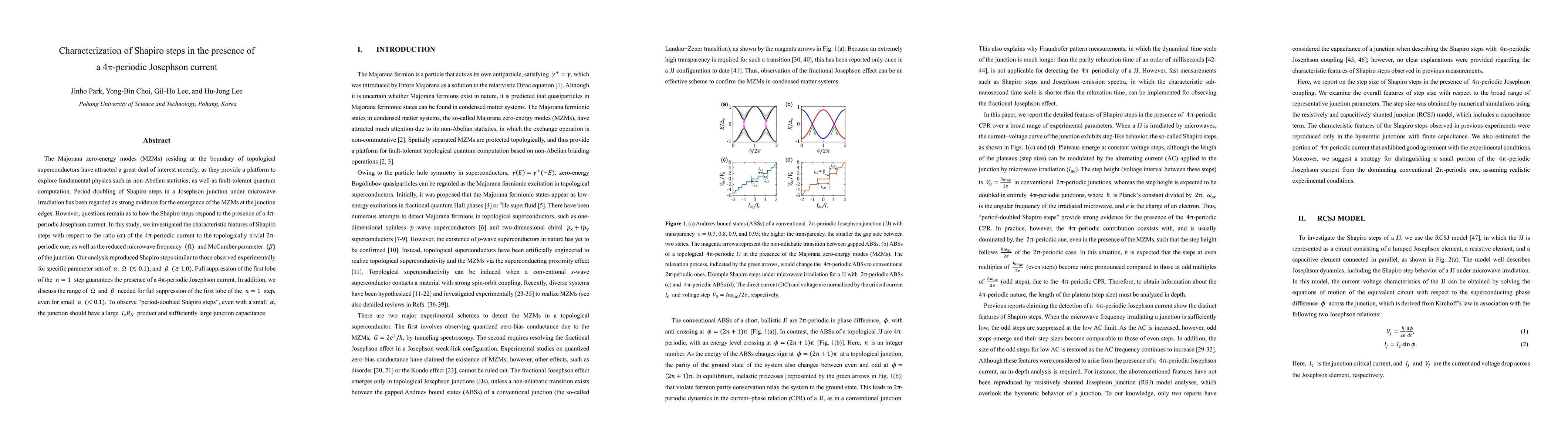 The Majorana zero-energy modes (MZMs) residing at the boundary of topological superconductors have attracted a great deal of interest recently, as they provide a platform to explore fundamental physics such as non-Abelian statistics, as well as fault-tolerant quantum computation. Period doubling of Shapiro steps in a Josephson junction under microwave irradiation has been regarded as strong evidence for the emergence of the MZMs at the junction edges. However, questions remain as to how the Shapiro steps respond to the presence of a 4{\pi}-periodic Josephson current. In this study, we investigated the characteristic features of Shapiro steps with respect to the ratio ({\alpha}) of the 4{\pi}-periodic current to the topologically trivial 2{\pi}-periodic one, as well as the reduced microwave frequency ({\Omega}) and McCumber parameter ({\beta}) of the junction. Our analysis reproduced Shapiro steps similar to those observed experimentally for specific parameter sets of {\alpha},{\Omega} ({\lesssim 0.1}), and {\beta} ({gtrsim 1.0}). Full suppression of the first lobe of the n=1 step guarantees the presence of a 4{\pi}-periodic Josephson current.In addition, we discuss the range of {\Omega} and {\beta} needed for full suppression of the first lobe of the {n=1} step, even for small {\alpha} ({<0.1}). To observe "period-doubled Shapiro steps", even with a small {\alpha}, the junction should have a large {I_c}{R_N} product and sufficiently large junction capacitance.