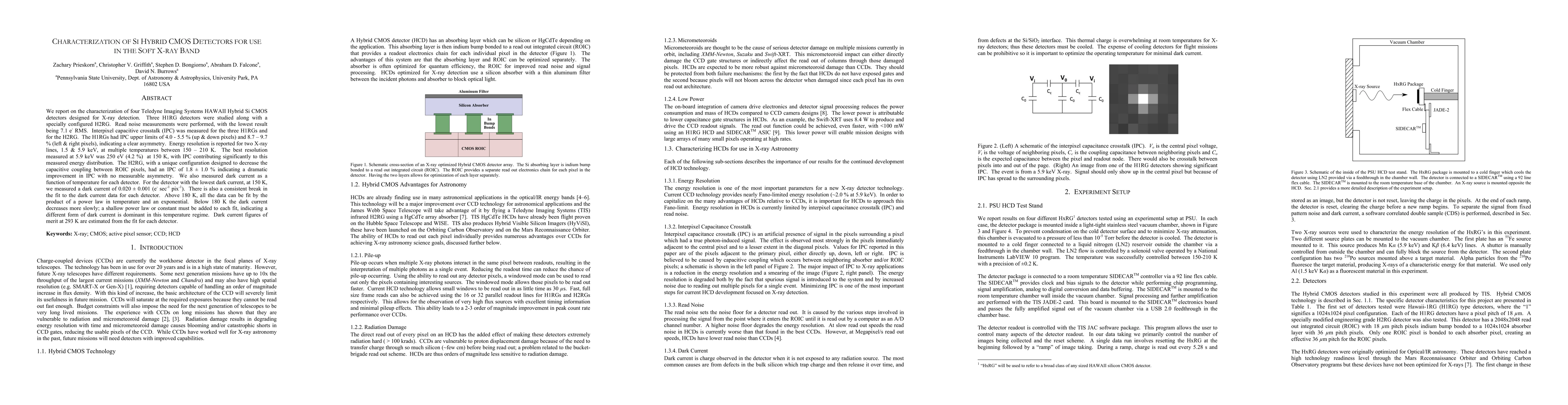 This paper characterizes four Teledyne Imaging Systems HAWAII Hybrid Si CMOS detectors for soft X-ray detection, focusing on read noise, interpixel capacitive crosstalk (IPC), and energy resolution. The H2RG detector showed significantly reduced IPC with no asymmetry, while the H1RG detectors exhibited IPC asymmetry and lower read noise of 7.1 e- RMS.