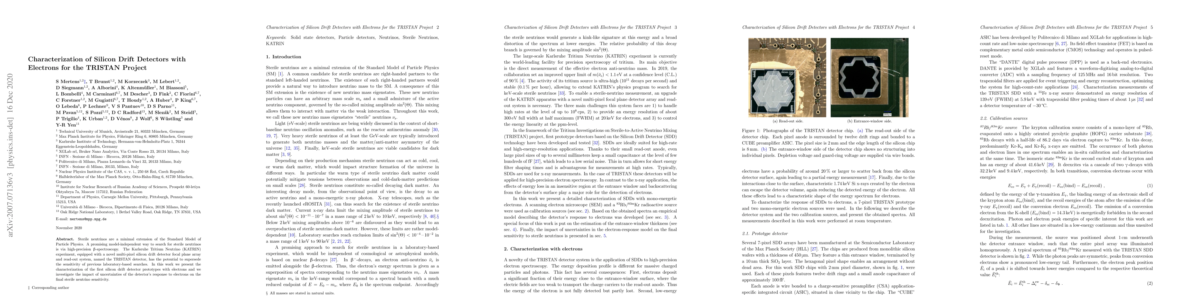 The research characterized Silicon Drift Detector (SDD) prototypes for the TRISTAN project using mono-energetic electrons from an electron microscope and a radioactive 83mKr source. An empirical analytical model and Monte Carlo simulations were employed to describe the detector response to electrons.