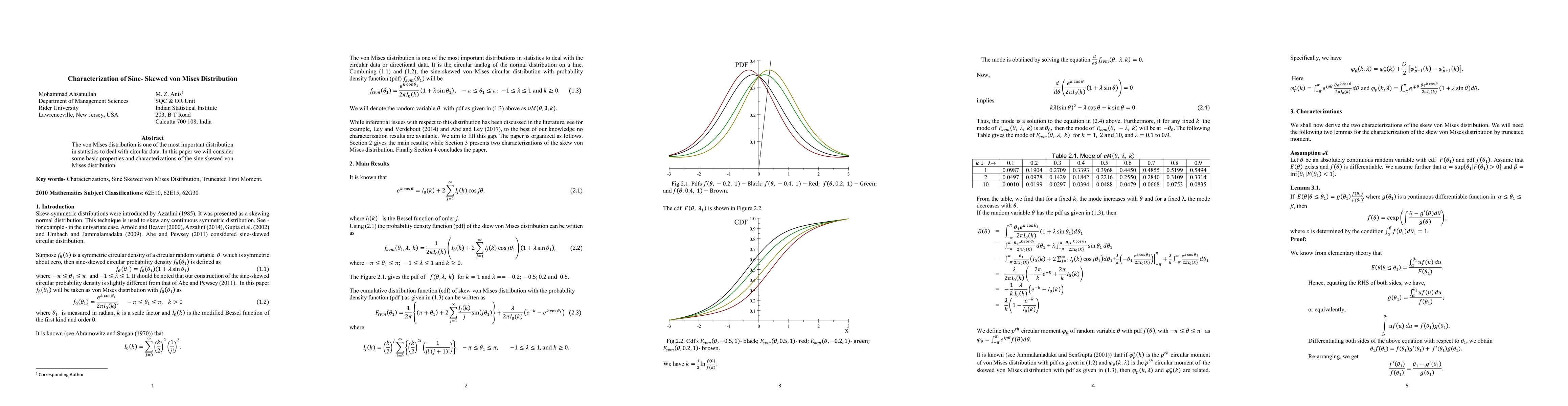 This paper explores fundamental properties and characterizations of the sine-skewed von Mises distribution, an extension of the standard von Mises distribution used for analyzing circular data with skewness. The study aims to provide a comprehensive understanding of this skewed distribution.