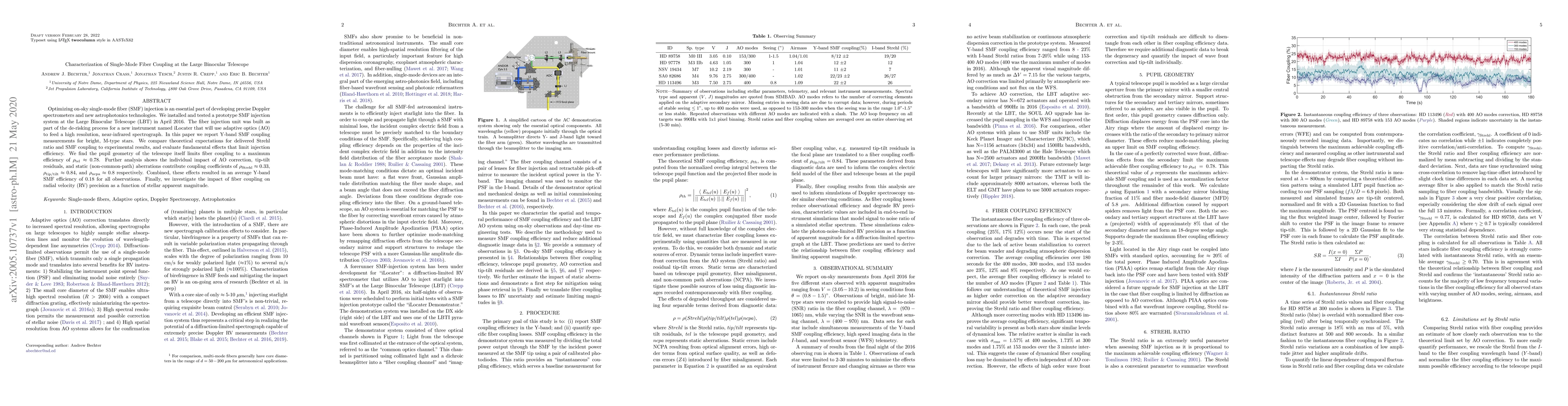 This paper reports on the optimization of single-mode fiber coupling at the Large Binocular Telescope, focusing on the prototype injection system for the iLocater instrument. The study finds that the telescope's pupil geometry limits the coupling efficiency to a maximum of 0.78, with additional factors like adaptive optics correction and aberrations further reducing the overall efficiency to an average of 0.18 in the Y-band.