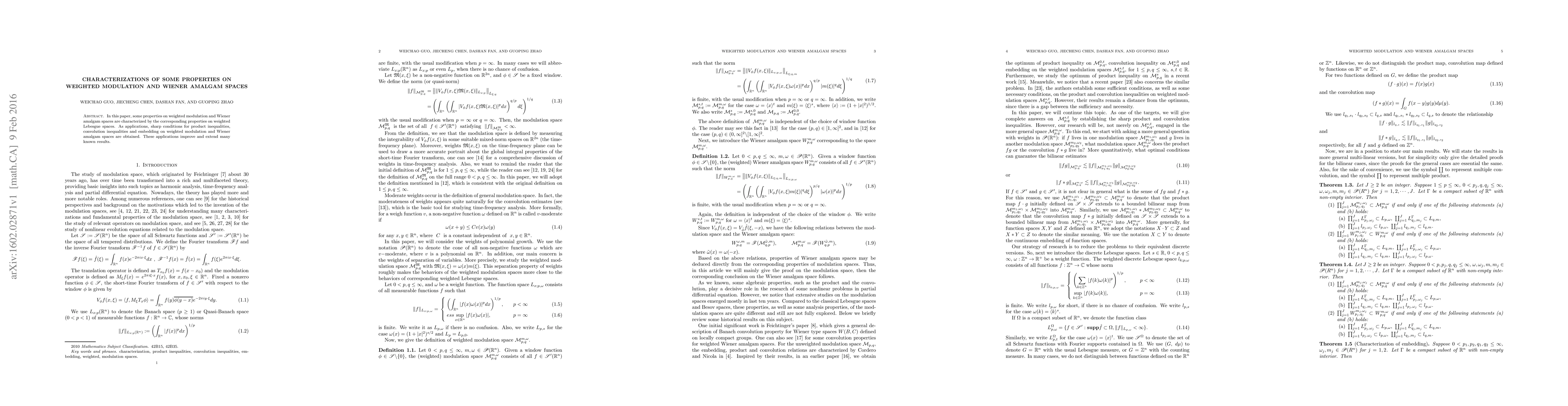 This paper characterizes properties of weighted modulation and Wiener amalgam spaces through their corresponding properties in weighted Lebesgue spaces, leading to improved and extended sharp conditions for product, convolution, and embedding inequalities.