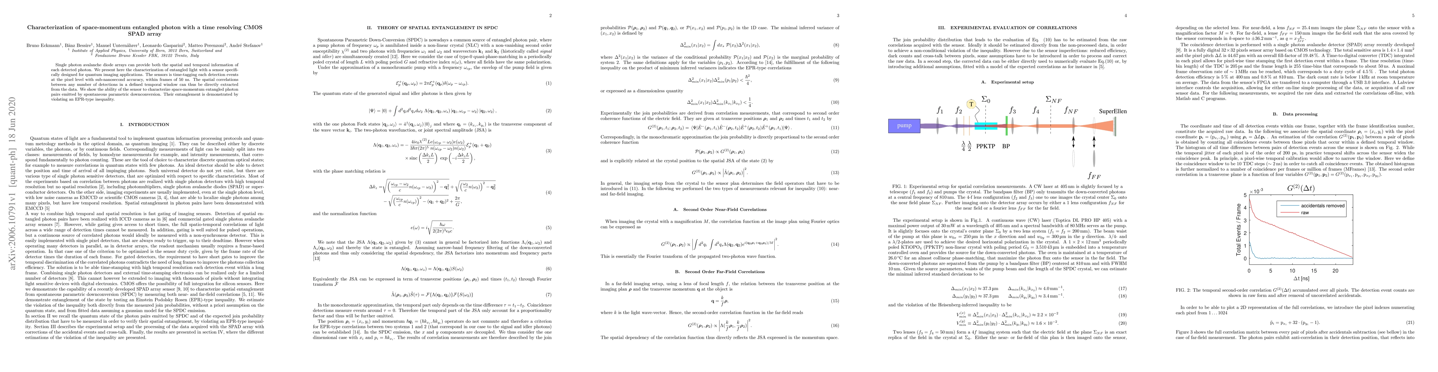This paper characterizes entangled photons using a CMOS SPAD array that provides spatial and temporal information with sub-nanosecond accuracy. The sensor demonstrates the ability to extract spatial correlations from entangled photon pairs, validating their entanglement through an EPR-type inequality violation.