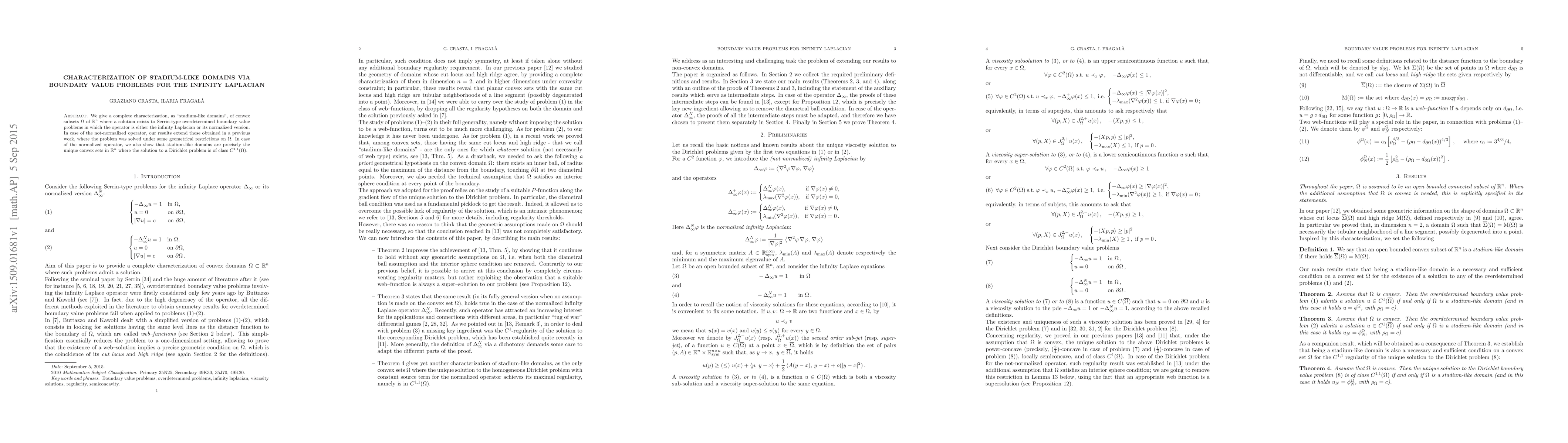 This paper characterizes "stadium-like domains" as convex subsets $\Omega$ of $\mathbb{R}^n$ that allow solutions to Serrin-type overdetermined boundary value problems involving the infinity Laplacian or its normalized version. It extends previous results for the non-normalized operator and shows that for the normalized operator, these domains are the only convex sets where the Dirichlet problem solution is of class $C^{1,1}$.