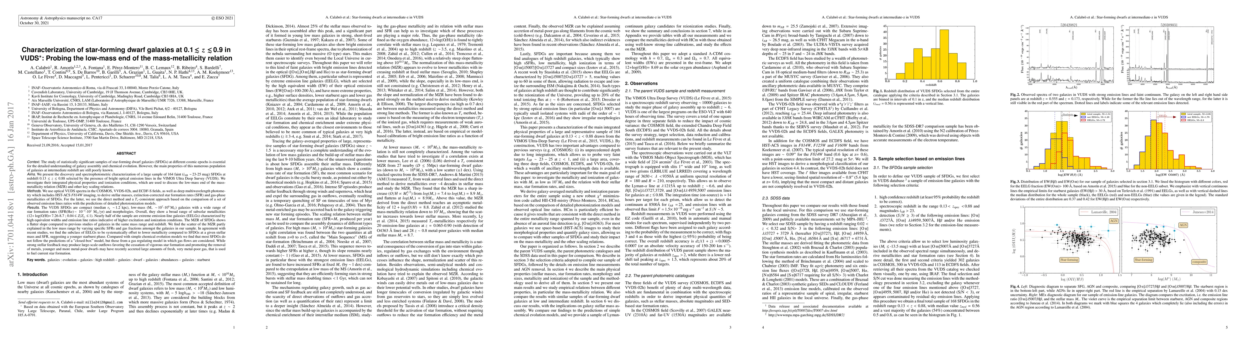 We present the discovery and spectrophotometric characterization of a large sample of 164 faint ($i_{AB}$ $\sim$ $23$-$25$ mag) star-forming dwarf galaxies (SFDGs) at redshift $0.13$ $\leq z \leq$ $0.88$ selected by the presence of bright optical emission lines in the VIMOS Ultra Deep Survey (VUDS). We investigate their integrated physical properties and ionization conditions, which are used to discuss the low-mass end of the mass-metallicity relation (MZR) and other key scaling relations. We use optical VUDS spectra in the COSMOS, VVDS-02h, and ECDF-S fields, as well as deep multiwavelength photometry, to derive stellar masses, star formation rates (SFR) and gas-phase metallicities. The VUDS SFDGs are compact (median $r_{e}$ $\sim$ $1.2$ kpc), low-mass ($M_{*}$ $\sim$ $10^7-10^9$ $M_{\odot}$) galaxies with a wide range of star formation rates (SFR($H\alpha$) $\sim 10^{-3}-10^{1}$ $M_{\odot}/yr$) and morphologies. Overall, they show a broad range of subsolar metallicities (12+log(O/H)=$7.26$-$8.7$; $0.04$ $\lesssim Z/Z_{\odot} \lesssim$ $1$). The MZR of SFDGs shows a flatter slope compared to previous studies of galaxies in the same mass range and redshift. We find the scatter of the MZR partly explained in the low mass range by varying specific SFRs and gas fractions amongst the galaxies in our sample. Compared with simple chemical evolution models we find that most SFDGs do not follow the predictions of a "closed-box" model, but those from a gas regulating model in which gas flows are considered. While strong stellar feedback may produce large-scale outflows favoring the cessation of vigorous star formation and promoting the removal of metals, younger and more metal-poor dwarfs may have recently accreted large amounts of fresh, very metal-poor gas, that is used to fuel current star formation.