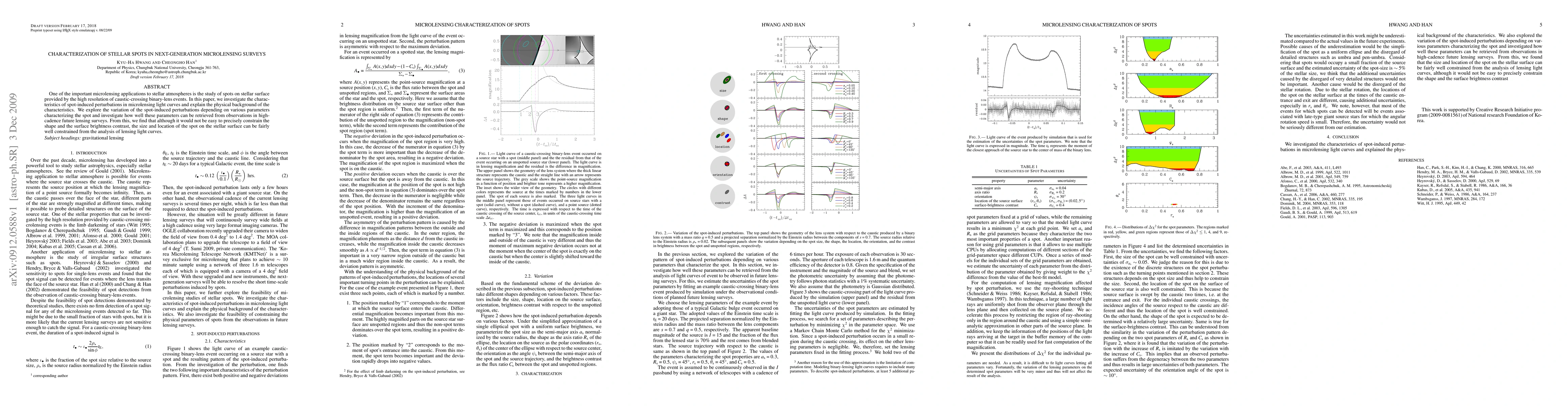 This paper investigates the characteristics of stellar spots through high-resolution microlensing light curves, particularly during caustic-crossing binary-lens events, and explores the potential of future surveys to retrieve spot parameters. While precise constraints on shape and brightness contrast are challenging, the size and location of spots can be fairly well determined.