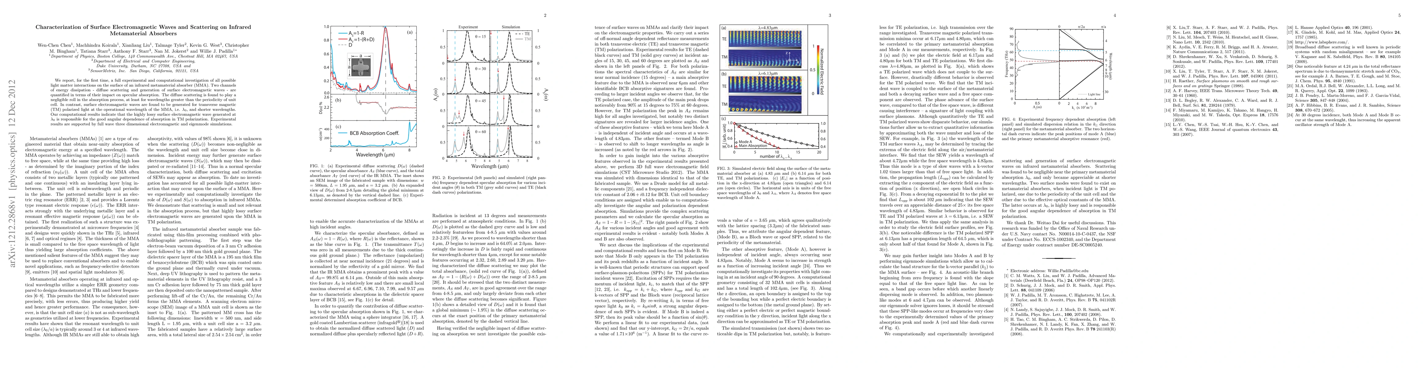 This paper investigates the interactions of light with an infrared metamaterial absorber, finding that while diffuse scattering has minimal impact, surface electromagnetic waves generated at specific wavelengths significantly enhance absorption, particularly in transverse magnetic polarization. Computational and experimental results confirm the role of these waves in achieving good angular absorption performance.