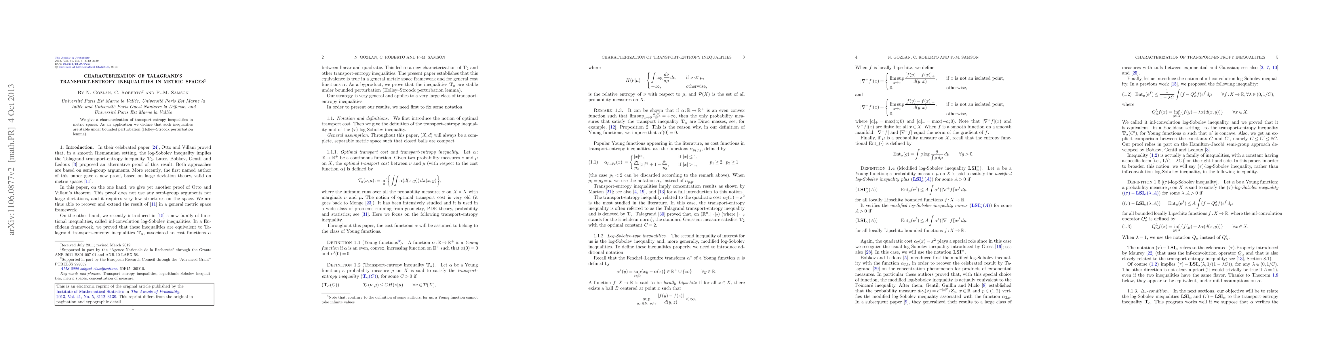 Summary: This paper characterizes Talagrand's transport-entropy inequalities in metric spaces and demonstrates their stability under bounded perturbation, leveraging the Holley-Stroock perturbation Lemma.
