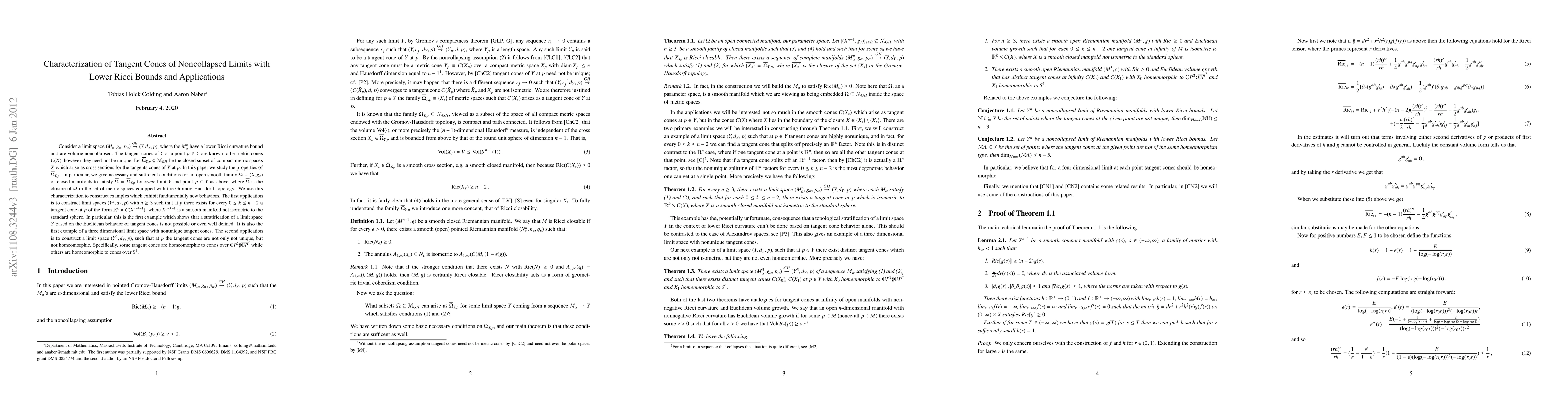 Consider a limit space $(M_\alpha,g_\alpha,p_\alpha)\stackrel{GH}{\rightarrow} (Y,d_Y,p)$, where the $M_\alpha^n$ have a lower Ricci curvature bound and are volume noncollapsed. The tangent cones of $Y$ at a point $p\in Y$ are known to be metric cones $C(X)$, however they need not be unique. Let $\bar\Omega_{Y,p}\subseteq\cM_{GH}$ be the closed subset of compact metric spaces $X$ which arise as cross sections for the tangents cones of $Y$ at $p$. In this paper we study the properties of $\bar\Omega_{Y,p}$. In particular, we give necessary and sufficient conditions for an open smooth family $\Omega\equiv (X_s,g_s)$ of closed manifolds to satisfy $\bar\Omega =\bar\Omega_{Y,p}$ for {\it some} limit $Y$ and point $p\in Y$ as above, where $\bar\Omega$ is the closure of $\Omega$ in the set of metric spaces equipped with the Gromov-Hausdorff topology. We use this characterization to construct examples which exhibit fundamentally new behaviors. The first application is to construct limit spaces $(Y^n,d_Y,p)$ with $n\geq 3$ such that at $p$ there exists for every $0\leq k\leq n-2$ a tangent cone at $p$ of the form $\RR^{k}\times C(X^{n-k-1})$, where $X^{n-k-1}$ is a smooth manifold not isometric to the standard sphere. In particular, this is the first example which shows that a stratification of a limit space $Y$ based on the Euclidean behavior of tangent cones is not possible or even well defined. It is also the first example of a three dimensional limit space with nonunique tangent cones. The second application is to construct a limit space $(Y^5,d_Y,p)$, such that at $p$ the tangent cones are not only not unique, but not homeomorphic. Specifically, some tangent cones are homeomorphic to cones over $\CC P^2\sharp\bar{\CC P}^2$ while others are homeomorphic to cones over $\Sn^4$.