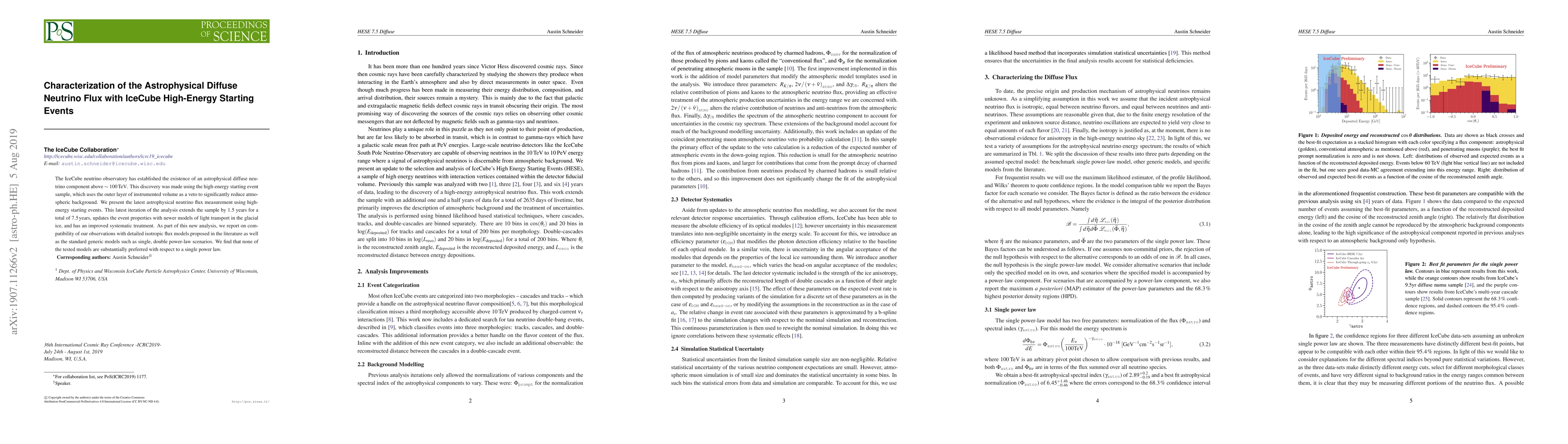 The IceCube observatory has measured the astrophysical diffuse neutrino flux using high-energy starting events, extending the data collection to 7.5 years. The analysis does not favor any specific model over a single power-law scenario, indicating a broad, consistent astrophysical neutrino source distribution.
