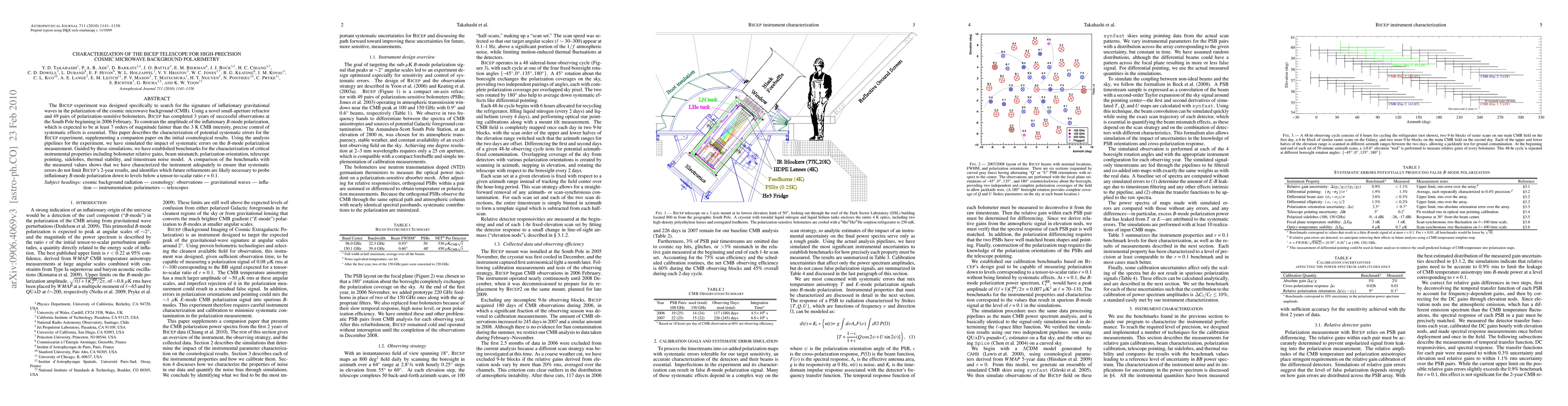 The BICEP telescope, equipped with polarization-sensitive bolometers, has been characterized for high-precision measurements of the cosmic microwave background's polarization to detect inflationary gravitational waves. The paper details systematic error controls and benchmarks for instrumental properties, ensuring BICEP's results are reliable and identifying future improvements needed to achieve lower sensitivity thresholds.