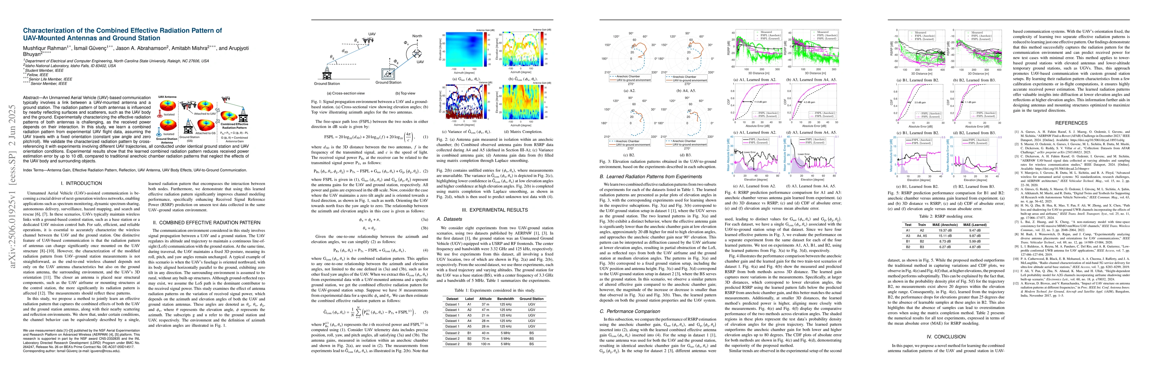 The paper presents a method to learn and validate a combined radiation pattern of UAV-mounted antennas and ground stations, accounting for the effects of the UAV body and surrounding objects.