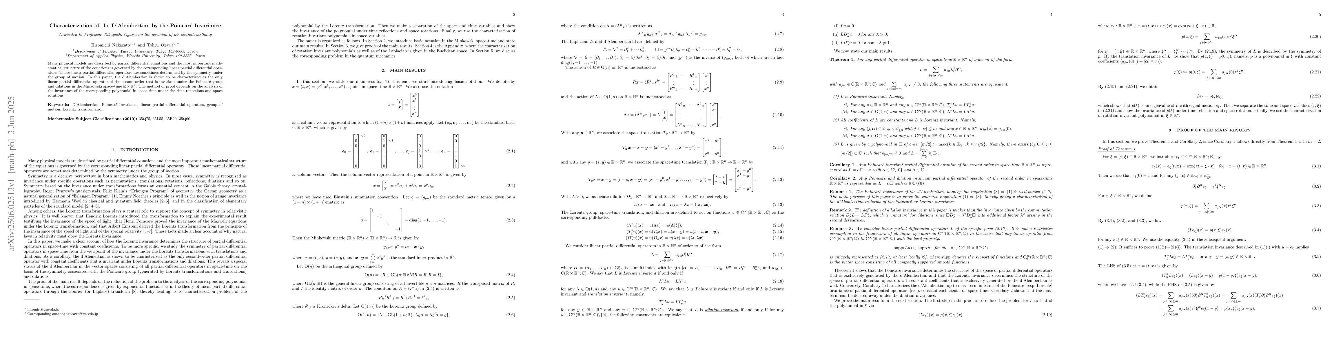 The paper presents a novel method for characterizing the d'Alembertian based on its invariance properties under Poincaré transformations and dilations.