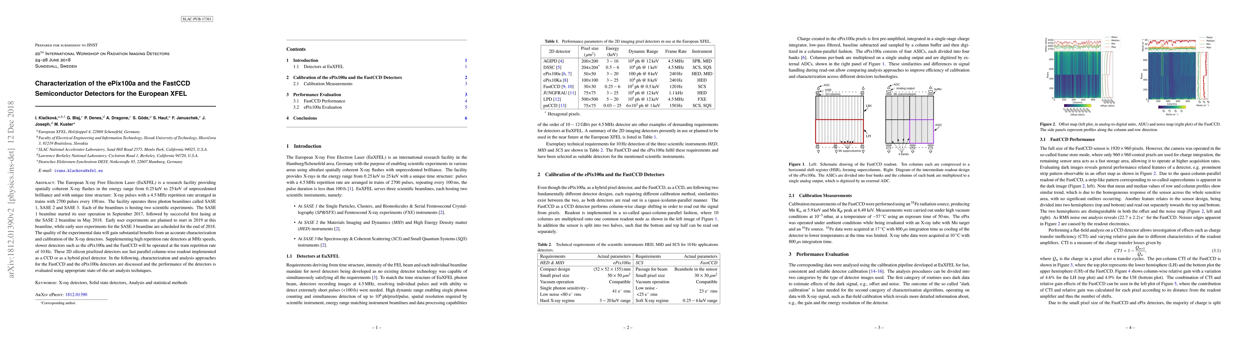 The European X-ray Free Electron Laser (EuXFEL) is a research facility providing spatially coherent X-ray flashes in the energy range from 0.25keV to 25keV of unprecedented brilliance and with unique time structure: X-ray pulses with a 4.5 MHz repetition rate arranged in trains with 2700 pulses every 100 ms. The facility operates three photon beamlines called SASE 1, SASE 2 and SASE 3. Each of the beamlines is hosting two scientific experiments. The SASE 1 beamline started its user operation in September 2017, followed by successful first lasing at the SASE 2 beamline in May 2018. Early user experiments are planned to start in 2019 at this beamline, while early user experiments for the SASE 3 beamline are scheduled for the end of 2018. The quality of the experimental data will gain substantial benefits from an accurate characterization and calibration of the X-ray detectors. Supplementing high repetition rate detectors at MHz speeds, slower detectors such as the ePix100a and the FastCCD will be operated at the train repetition rate of 10 Hz. These 2D silicon pixelized detectors use fast parallel column-wise readout implemented as a CCD or as a hybrid pixel detector. In the following, characterization and analysis approaches for the FastCCD and the ePix100a detectors are discussed and the performance of the detectors is evaluated using appropriate state-of-the-art analysis techniques.