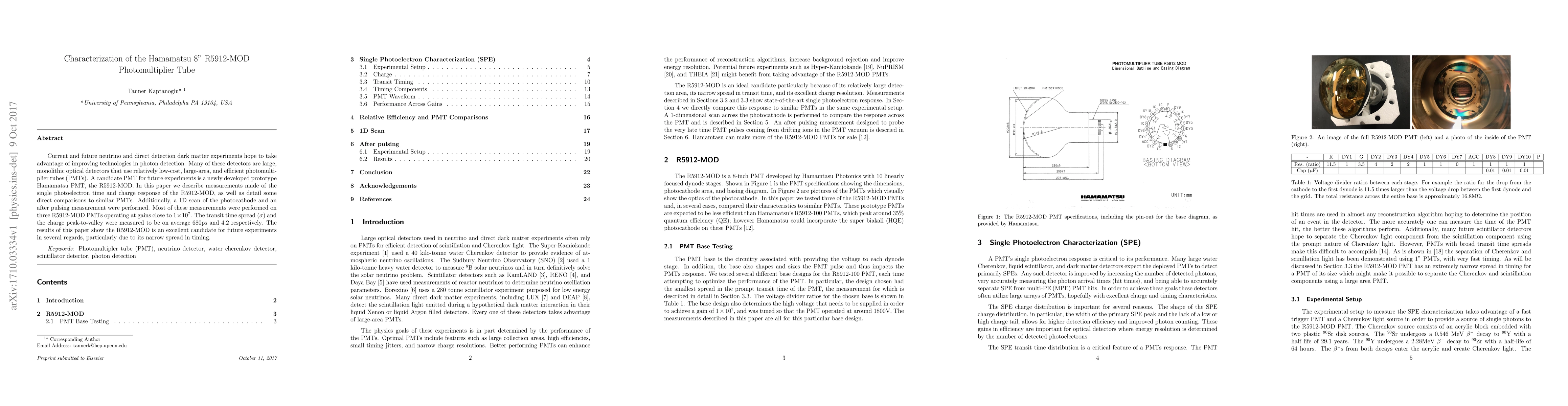A new photomultiplier tube (PMT) prototype, R5912-MOD, shows excellent timing properties with a narrow transit time spread of 680ps, making it an ideal candidate for future neutrino and dark matter experiments.