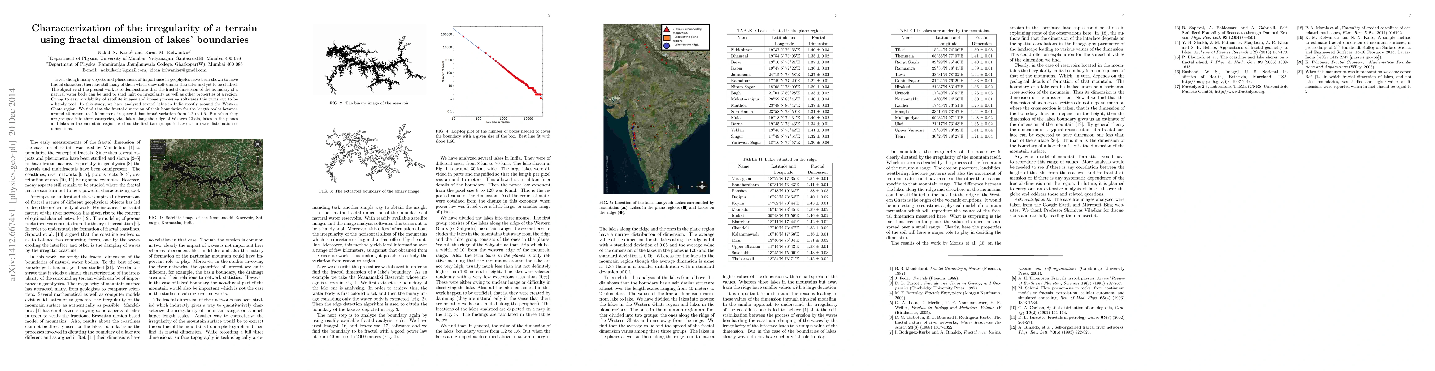 This study investigates the fractal dimension of lake boundaries in India to characterize terrain irregularity, finding significant variation in fractal dimensions (1.2 to 1.6) across different lakes. Grouping lakes by their geographical location reveals more consistent fractal dimensions for lakes along ridges and in plains compared to those in mountain regions.