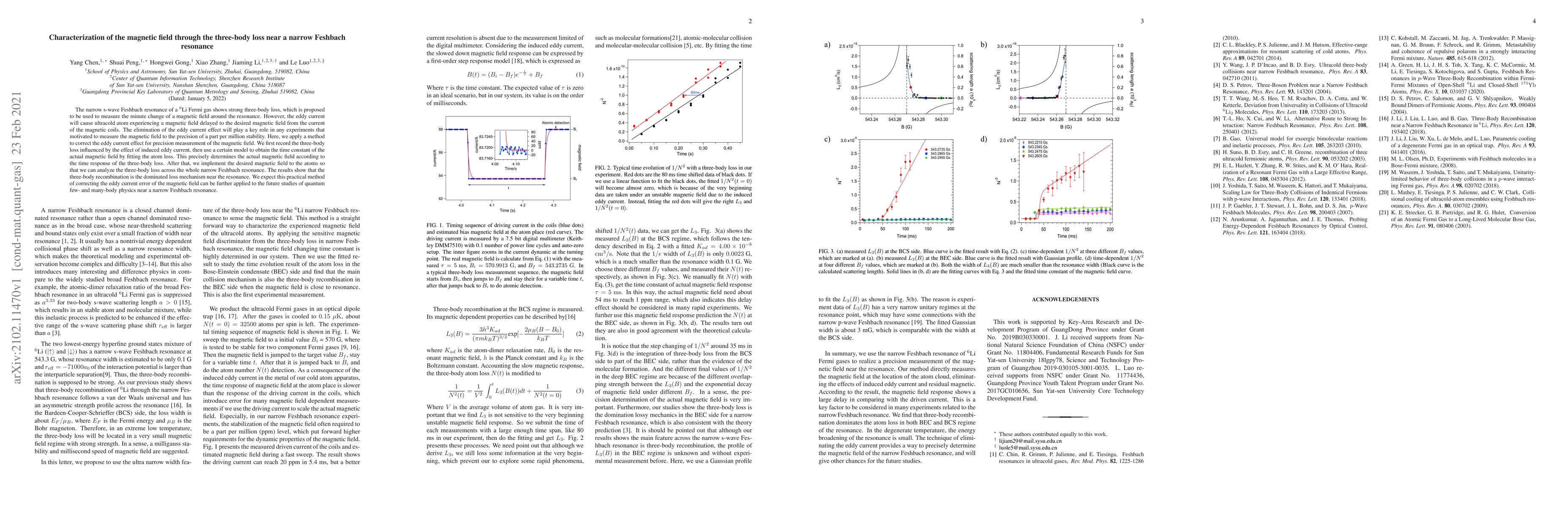 This paper characterizes the magnetic field near a narrow Feshbach resonance in a $^6$Li Fermi gas, addressing the issue of three-body loss due to eddy currents. The study proposes a method to correct for eddy current effects, enabling precise magnetic field measurements with a part per million stability.