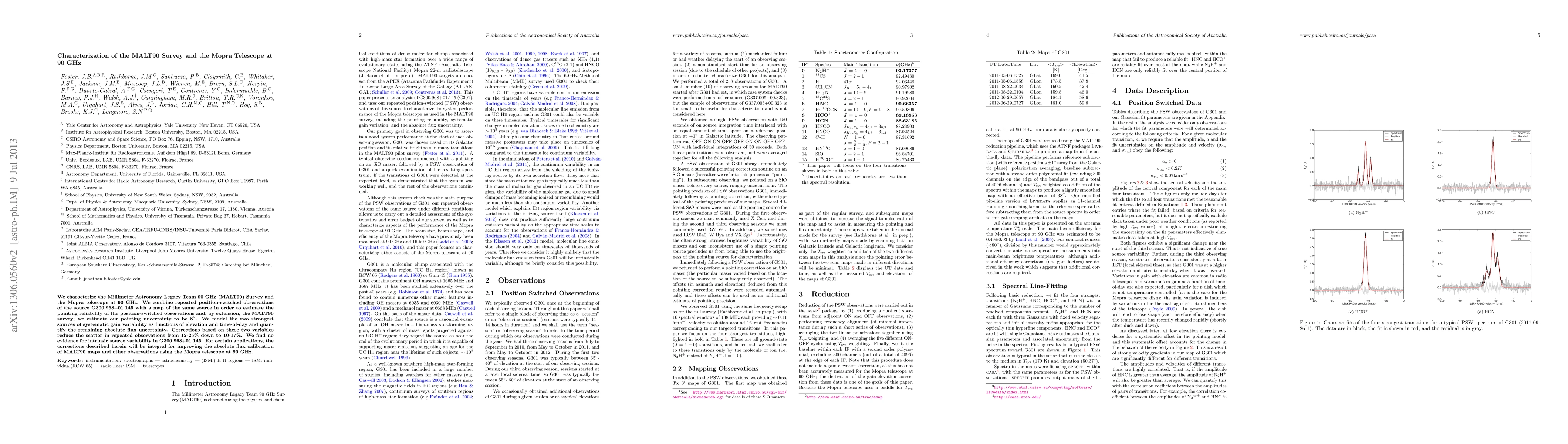 This paper characterizes the MALT90 Survey and the Mopra telescope at 90 GHz, estimating a pointing uncertainty of 8 arcseconds and reducing systematic gain variability-related scatter in observations to 10-17%. The corrections applied are crucial for improving the absolute flux calibration of MALT90 maps.