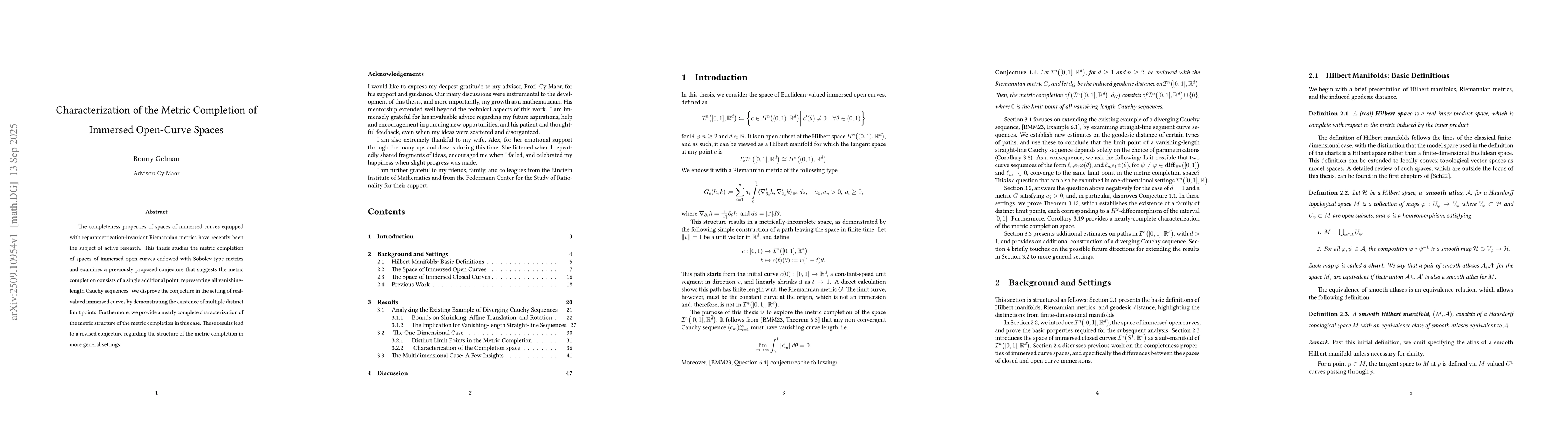 The completeness properties of spaces of immersed curves equipped with reparametrization-invariant Riemannian metrics have recently been the subject of active research. This thesis studies the metric completion of spaces of immersed open curves endowed with Sobolev-type metrics and examines a previously proposed conjecture that suggests the metric completion consists of a single additional point, representing all vanishing length Cauchy sequences. We disprove the conjecture in the setting of real-valued immersed curves by demonstrating the existence of multiple distinct limit points. Furthermore, we provide a nearly complete characterization of the metric structure of the metric completion in this case. These results lead to a revised conjecture regarding the structure of the metric completion in more general settings