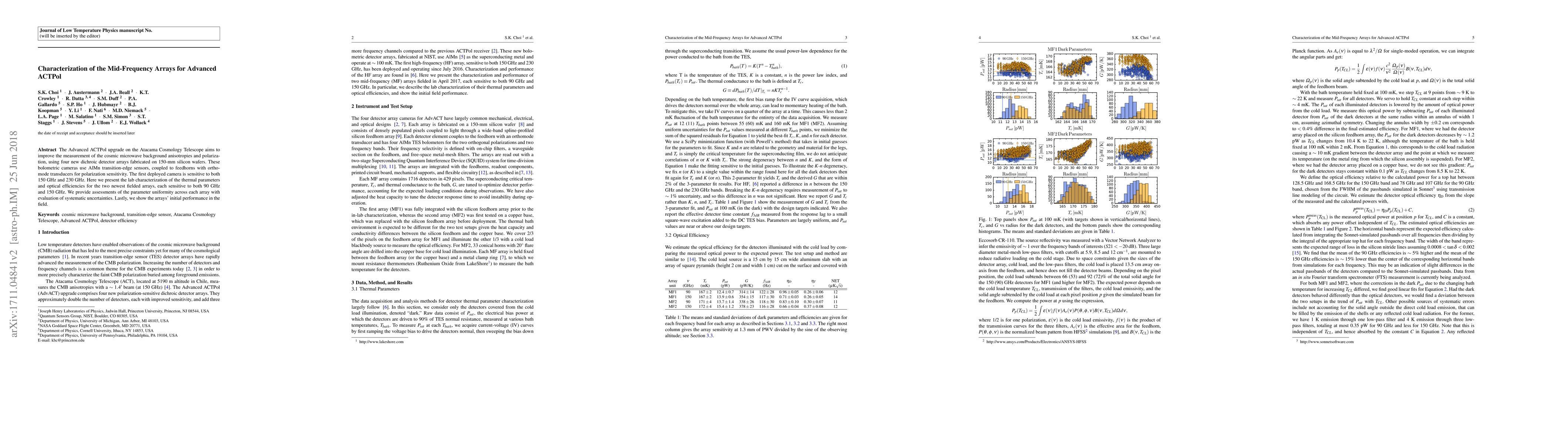 This paper characterizes the thermal parameters and optical efficiencies of the newest mid-frequency arrays for the Advanced ACTPol upgrade, focusing on uniformity across the arrays and initial field performance, while also assessing systematic uncertainties. The arrays, sensitive to 90 GHz and 150 GHz, utilize AlMn transition-edge sensors and orthomode transducers for polarization sensitivity.