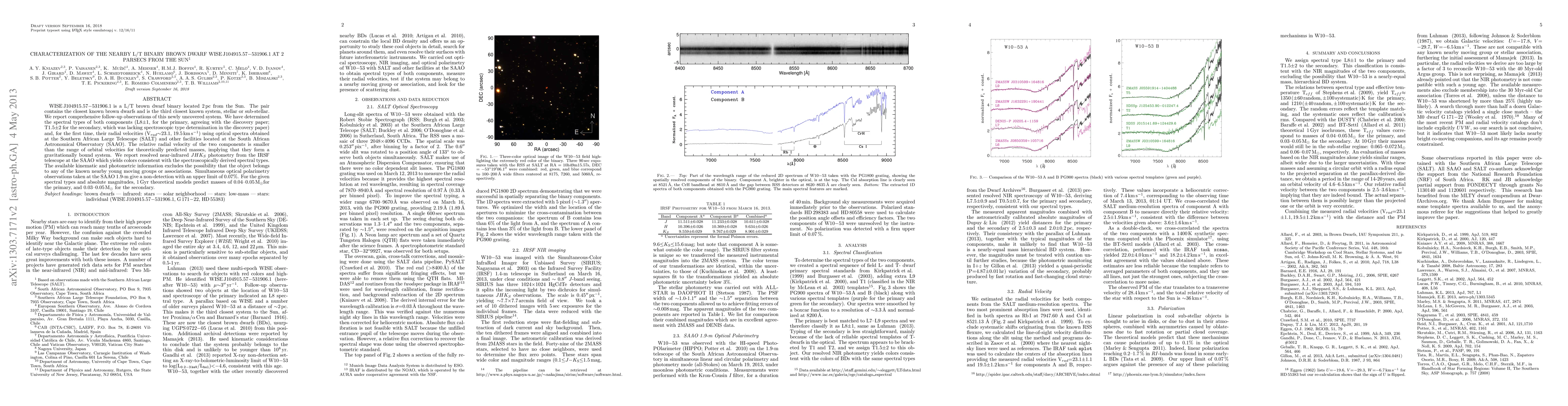 WISE J104915.57$-$531906.1 is a L/T brown dwarf binary located 2pc from the Sun. The pair contains the closest known brown dwarfs and is the third closest known system, stellar or sub-stellar. We report comprehensive follow-up observations of this newly uncovered system. We have determined the spectral types of both components (L8+/-1, for the primary, agreeing with the discovery paper; T1.5+/-2 for the secondary, which was lacking spectroscopic type determination in the discovery paper) and, for the first time, their radial velocities (V_rad~23.1, 19.5 km/s) using optical spectra obtained at the Southern African Large Telescope (SALT) and other facilities located at the South African Astronomical Observatory (SAAO). The relative radial velocity of the two components is smaller than the range of orbital velocities for theoretically predicted masses, implying that they form a gravitationally bound system. We report resolved near-infrared JHK_S photometry from the IRSF telescope at the SAAO which yields colors consistent with the spectroscopically derived spectral types. The available kinematic and photometric information excludes the possibility that the object belongs to any of the known nearby young moving groups or associations. Simultaneous optical polarimetry observations taken at the SAAO 1.9-m give a non-detection with an upper limit of 0.07%. For the given spectral types and absolute magnitudes, 1Gyr theoretical models predict masses of 0.04--0.05 M_odot for the primary, and 0.03--0.05 M_odot for the secondary.