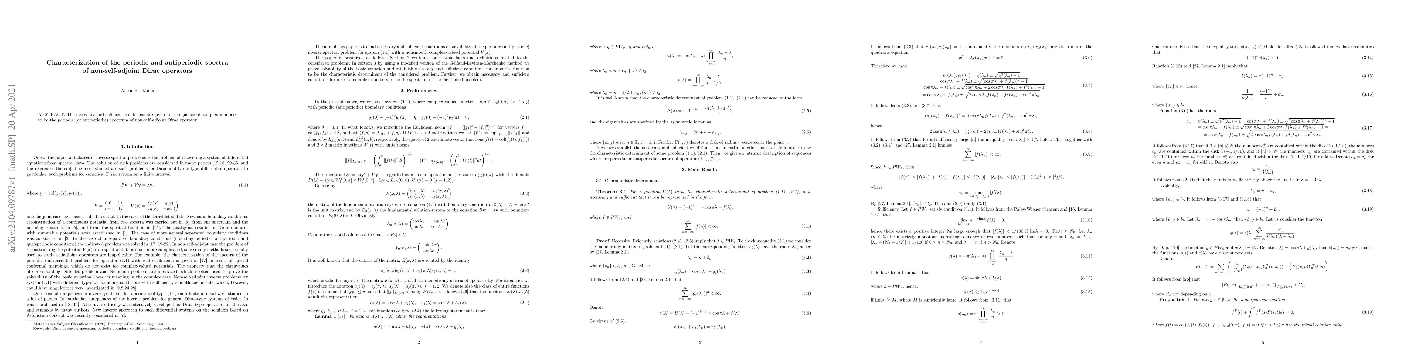 Summary: This paper identifies the necessary and sufficient conditions for a sequence of complex numbers to represent the periodic or antiperiodic spectra of non-self-adjoint Dirac operators, providing a comprehensive characterization of such spectral properties.