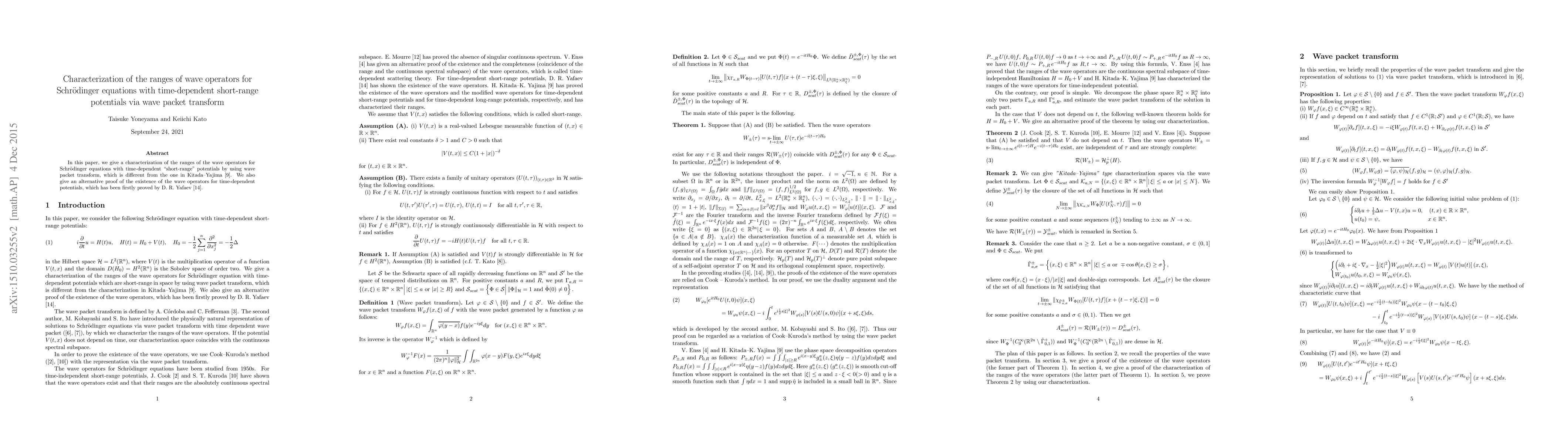 This paper characterizes the ranges of wave operators for Schrödinger equations with time-dependent short-range potentials using wave packet transform, and provides an alternative proof of wave operator existence and asymptotic completeness for time-independent potentials.