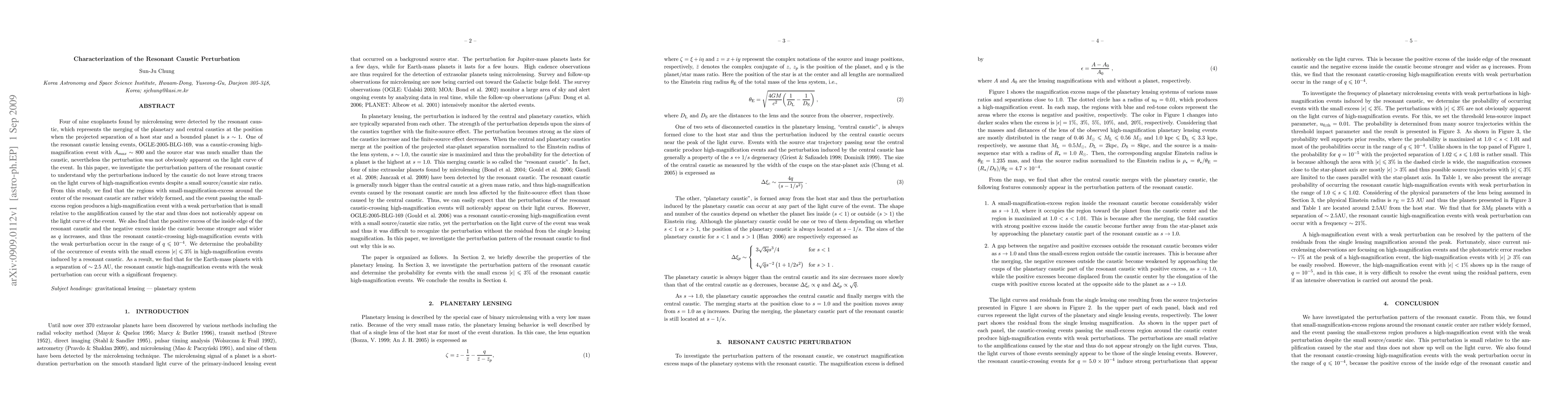 Four of nine exoplanets found by microlensing were detected by the resonant caustic, which represents the merging of the planetary and central caustics at the position when the projected separation of a host star and a bounded planet is s~1. One of the resonant caustic lensing events, OGLE-2005-BLG-169, was a caustic-crossing high-magnification event with $A_{max} \sim$ 800 and the source star was much smaller than the caustic, nevertheless the perturbation was not obviously apparent on the light curve of the event. In this paper, we investigate the perturbation pattern of the resonant caustic to understand why the perturbations induced by the caustic do not leave strong traces on the light curves of high-magnification events despite a small source/caustic size ratio. From this study, we find that the regions with small-magnification-excess around the center of the resonant caustic are rather widely formed, and the event passing the small-excess region produces a high-magnification event with a weak perturbation that is small relative to the amplification caused by the star and thus does not noticeably appear on the light curve of the event. We also find that the positive excess of the inside edge of the resonant caustic and the negative excess inside the caustic become stronger and wider as $q$ increases, and thus the resonant caustic-crossing high-magnification events with the weak perturbation occur in the range of $q \leqslant 10^{-4}$. We determine the probability of the occurrence of events with the small excess $|\epsilon| \leqslant 3 %$ in high-magnification events induced by a resonant caustic. As a result, we find that for the Earth-mass planets with a separation of ~ 2.5 AU, the resonant caustic high-magnification events with the weak perturbation can occur with a significant frequency.