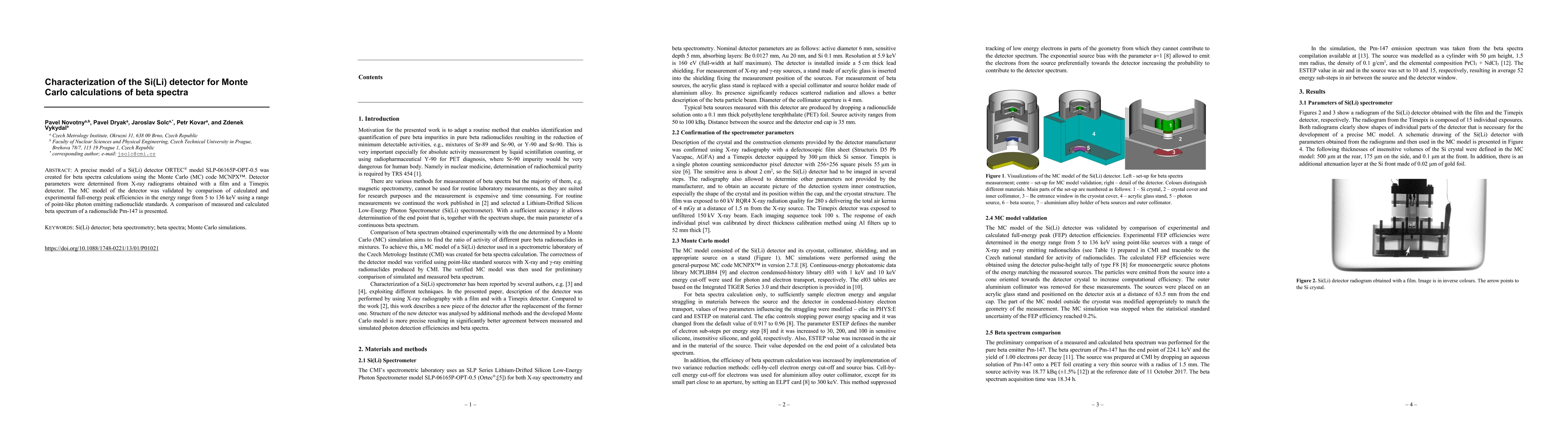 This study characterizes a Si(Li) detector using Monte Carlo simulations with the MCNPX code, validated by comparing calculated and experimental efficiencies for photon energies from 5 to 136 keV. The model's accuracy is demonstrated through a comparison of calculated and measured beta spectra for Pm-147.