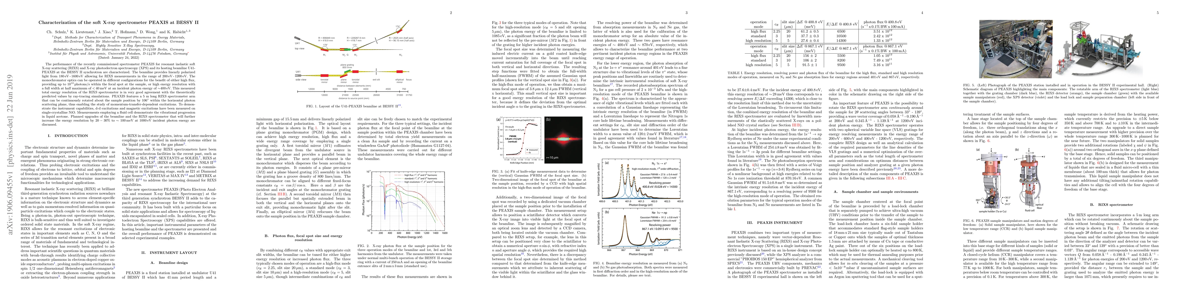 The PEAXIS spectrometer at BESSY II synchrotron is characterized for its high-performance capabilities in resonant inelastic soft X-ray scattering and X-ray photoelectron spectroscopy, with a total energy resolution matching theoretical predictions. Planned upgrades aim to enhance energy resolution further.