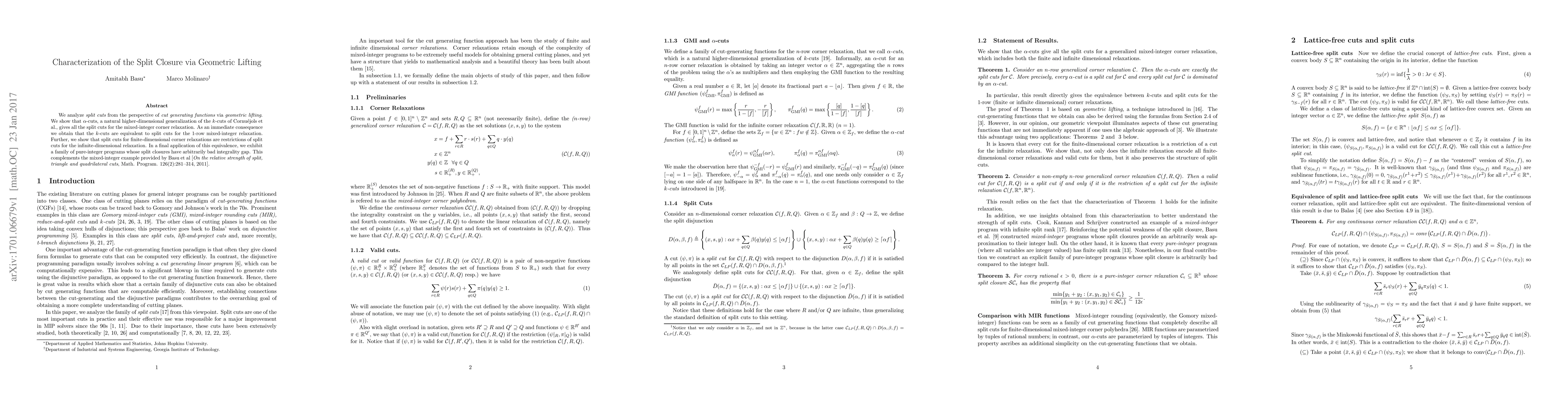 This paper characterizes split cuts using geometric lifting and demonstrates that $\alpha$-cuts generalize $k$-cuts, providing all split cuts for mixed-integer corner relaxations. It also shows that $k$-cuts are equivalent to split cuts for 1-row mixed-integer relaxations.