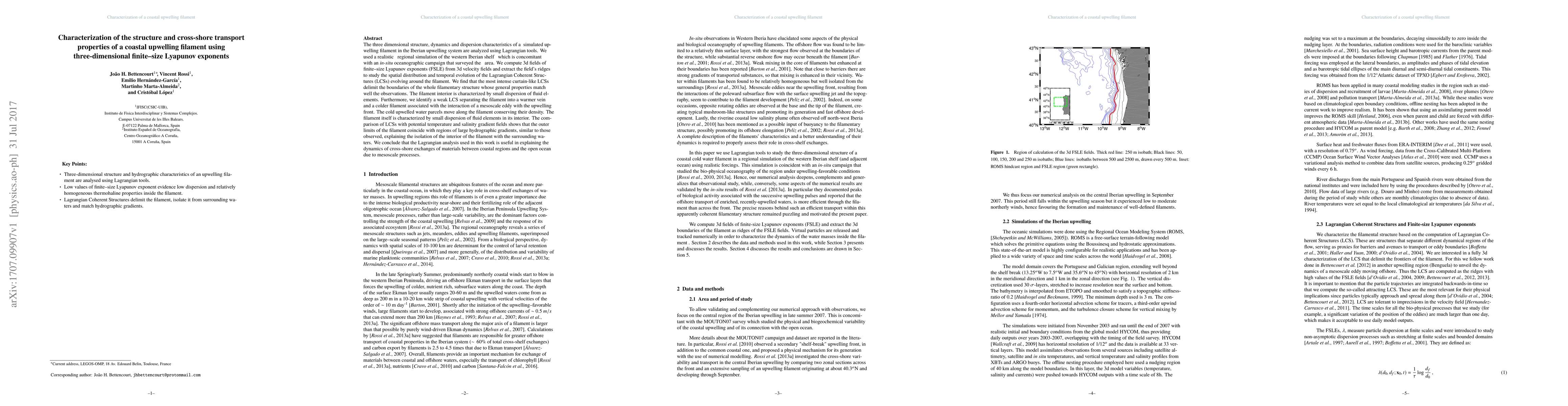 Researchers studied a coastal upwelling filament in the Iberian upwelling system using Lagrangian tools, finding that it has a well-defined structure with small dispersion of fluid elements inside and isolated from surrounding waters due to large hydrographic gradients.