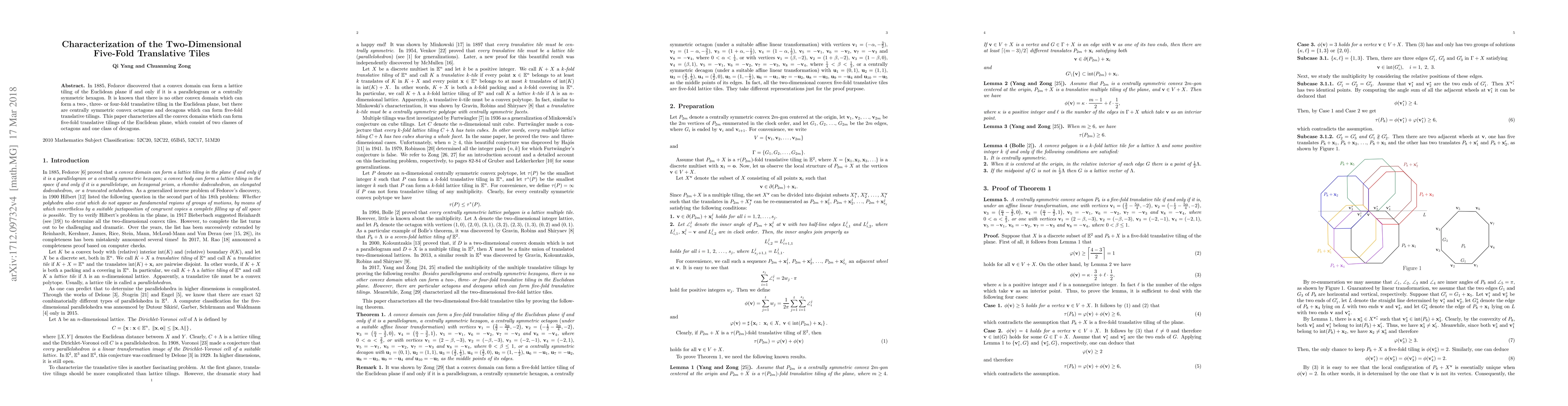 This paper characterizes all convex domains that can form five-fold translative tilings of the Euclidean plane, a problem first discovered by Fedorov in 1885.