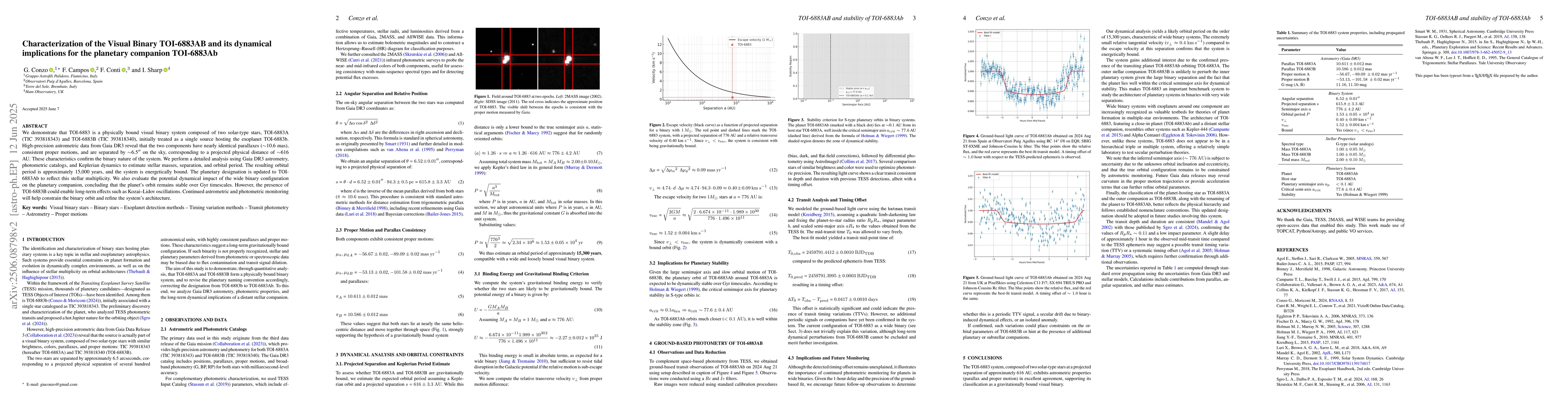 We demonstrate that TOI-6883 is a physically bound visual binary system composed of two solar-type stars, TOI-6883A (TIC 393818343) and TOI-6883B (TIC 393818340), initially regarded as a single star hosting the exoplanet TOI-6883b. Gaia DR3 astrometry shows that both stars have nearly identical parallaxes 10.6 mas, consistent proper motions, and a projected separation of 616 AU, confirming their binary nature. Using astrometric and photometric data, we estimate the stellar masses, physical separation, and an orbital period of 15,000 years. The system is energetically bound. We revise the planet designation to TOI-6883Ab to reflect stellar multiplicity. We evaluate the impact of the binary companion on planetary stability and find the planet's orbit to be long-term stable, although Kozai-Lidov perturbations remain possible. Further astrometric and photometric follow-up will be essential to better constrain the binary orbit and assess potential dynamical influences on the planetary architecture.