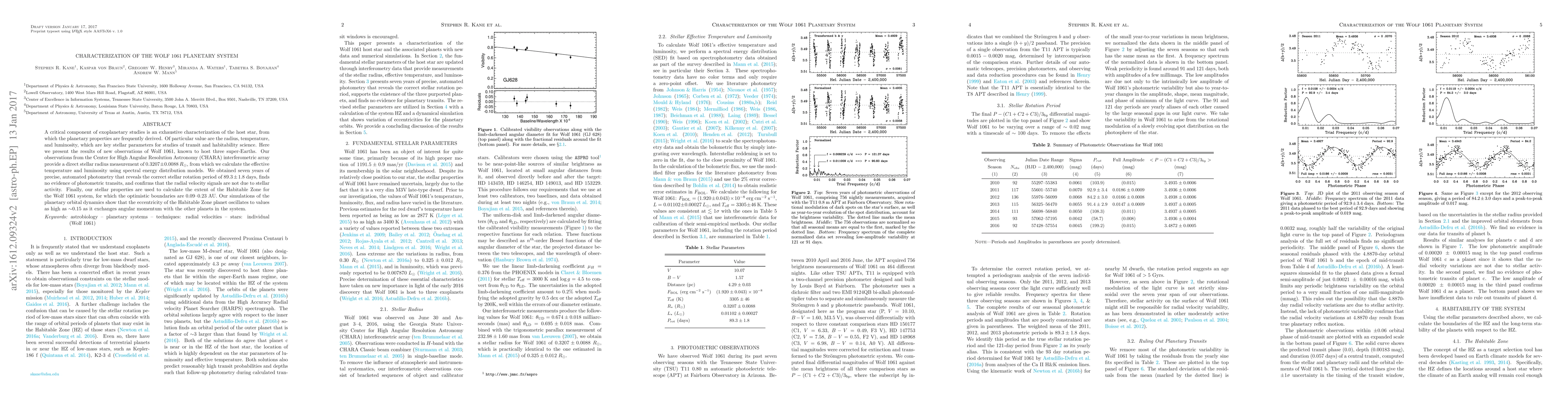 Astronomers characterized the Wolf 1061 planetary system, determining its star's size and temperature, and found a habitable zone with boundaries between 0.09-0.23 astronomical units.