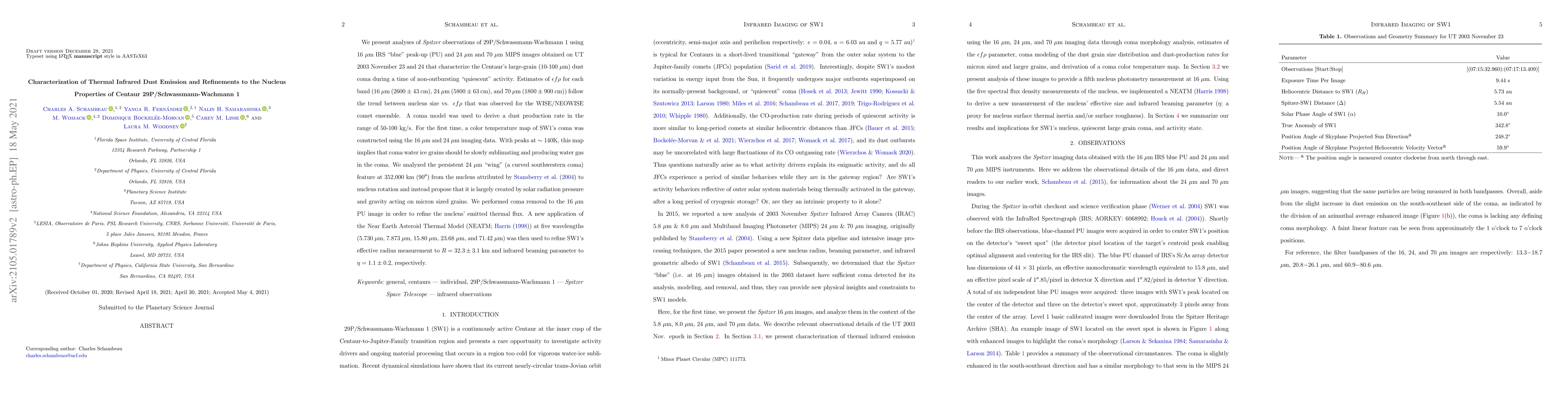 We present analyses of Spitzer observations of 29P/Schwassmann-Wachmann 1 using 16 $\mu$m IRS "blue" peak-up (PU) and 24 $\mu$m and 70 $\mu$m MIPS images obtained on UT 2003 November 23 and 24 that characterize the Centaur's large-grain (10-100 $\mu$m) dust coma during a time of non-outbursting "quiescent" activity. Estimates of $\epsilon f \rho$ for each band (16 $\mu$m (2600 $\pm$ 43 cm), 24 $\mu$m (5800 $\pm$ 63 cm), and 70 $\mu$m (1800 $\pm$ 900 cm)) follow the trend between nucleus size vs. $\epsilon f \rho$ that was observed for the WISE/NEOWISE comet ensemble. A coma model was used to derive a dust production rate in the range of 50-100 kg/s. For the first time, a color temperature map of SW1's coma was constructed using the 16 $\mu$m and 24 $\mu$m imaging data. With peaks at $\sim$ 140K, this map implies that coma water ice grains should be slowly sublimating and producing water gas in the coma. We analyzed the persistent 24 $\mu$m "wing" (a curved southwestern coma) feature at 352,000 km (90$''$) from the nucleus attributed by Stansberry et al. (2004) to nucleus rotation and instead propose that it is largely created by solar radiation pressure and gravity acting on micron sized grains. We performed coma removal to the 16 $\mu$m PU image in order to refine the nucleus' emitted thermal flux. A new application of the Near Earth Asteroid Thermal Model (NEATM; Harris 1998) at five wavelengths (5.730 $\mu$m, 7.873 $\mu$m, 15.80 $\mu$m, 23.68 $\mu$m, and 71.42 $\mu$m) was then used to refine SW1's effective radius measurement to $R = 32.3 \pm 3.1$ km and infrared beaming parameter to $\eta = 1.1 \pm 0.2$, respectively.