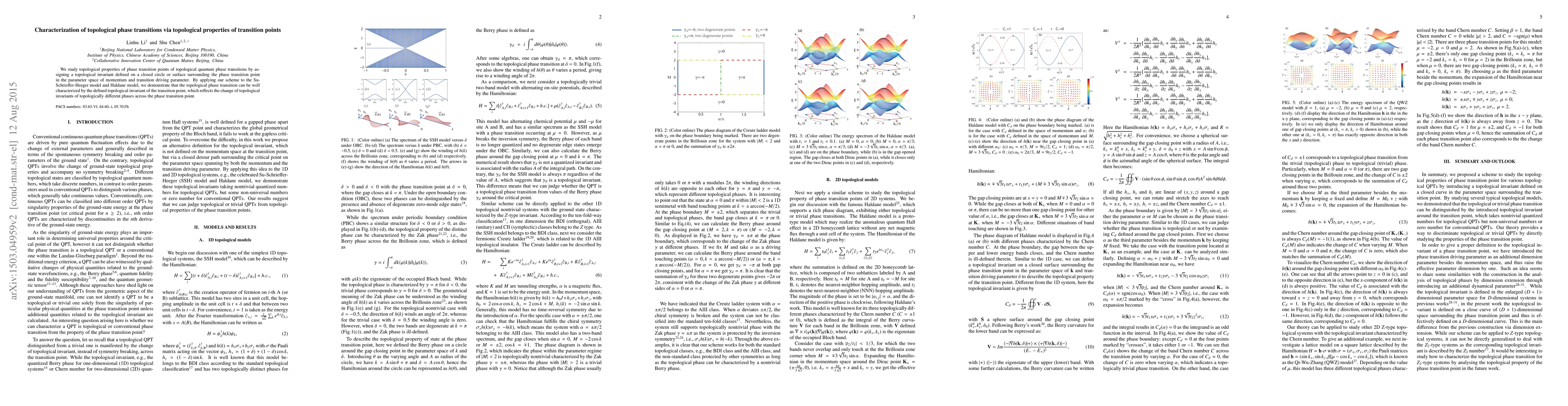 We study topological properties of phase transition points of topological quantum phase transitions by assigning a topological invariant defined on a closed circle or surface surrounding the phase transition point in the parameter space of momentum and transition driving parameter. By applying our scheme to the Su-Schrieffer-Heeger model and Haldane model, we demonstrate that the topological phase transition can be well characterized by the defined topological invariant of the transition point, which reflects the change of topological invariants of topologically different phases across the phase transition point.