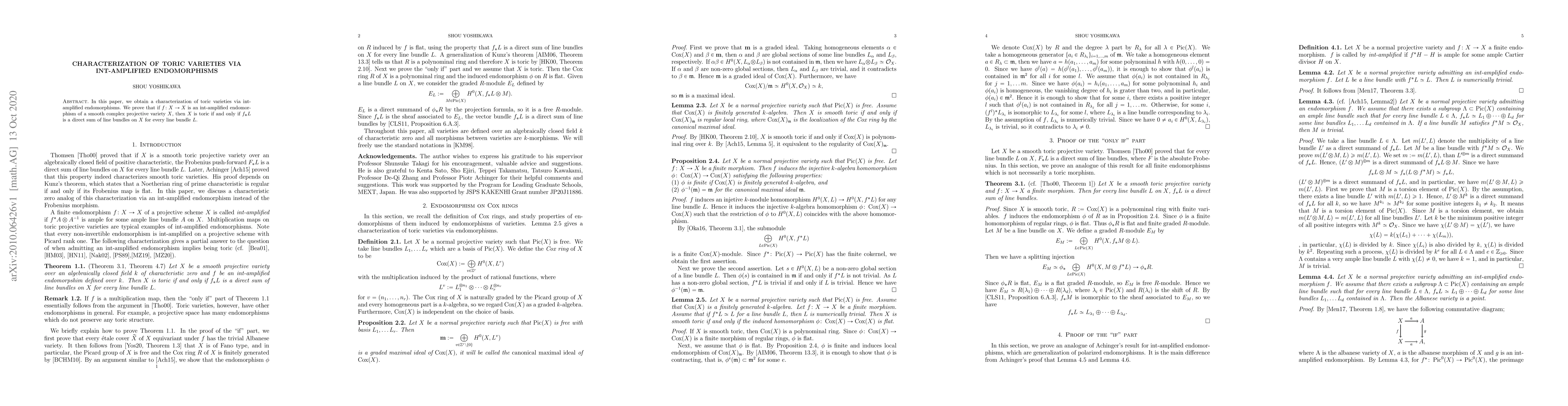 This paper characterizes toric varieties using int-amplified endomorphisms, proving that a smooth complex projective variety $X$ is toric if and only if every pushforward of a line bundle $L$ under an int-amplified endomorphism $f$ is a direct sum of line bundles on $X$.