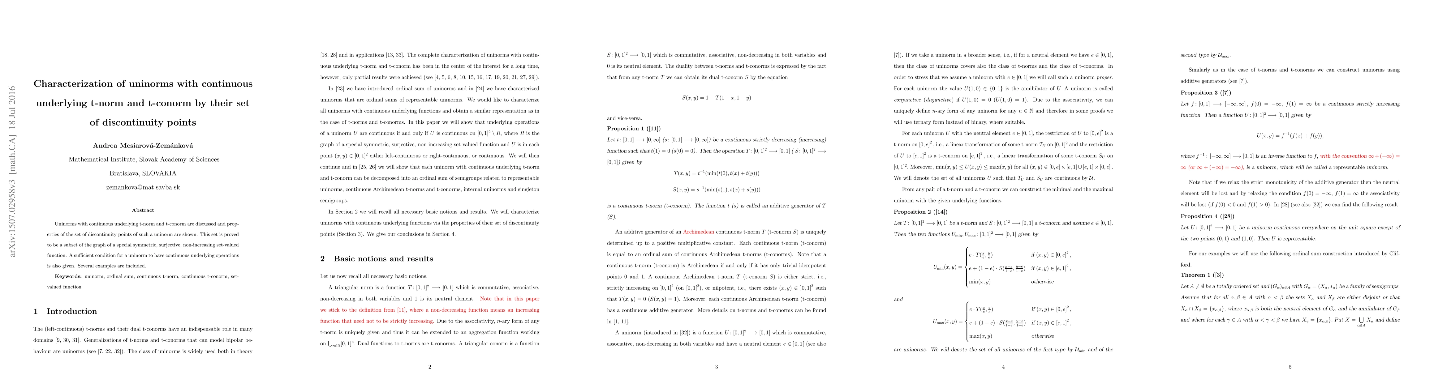 This paper characterizes uninorms with continuous underlying t-norm and t-conorm, proving that their set of discontinuity points is a subset of the graph of a specific symmetric, surjective, non-increasing multi-function. It also provides a sufficient condition for uninorms to have continuous underlying operations, supplemented by illustrative examples.