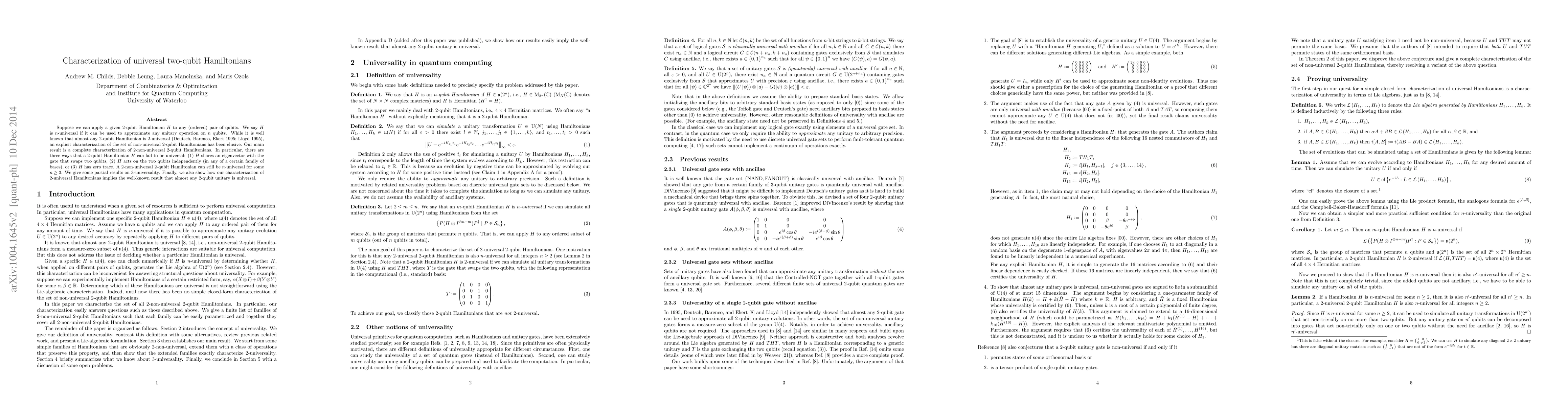 Researchers characterize universal 2-qubit Hamiltonians, identifying three types of non-universal Hamiltonians that can still approximate unitary operations on more than two qubits.
