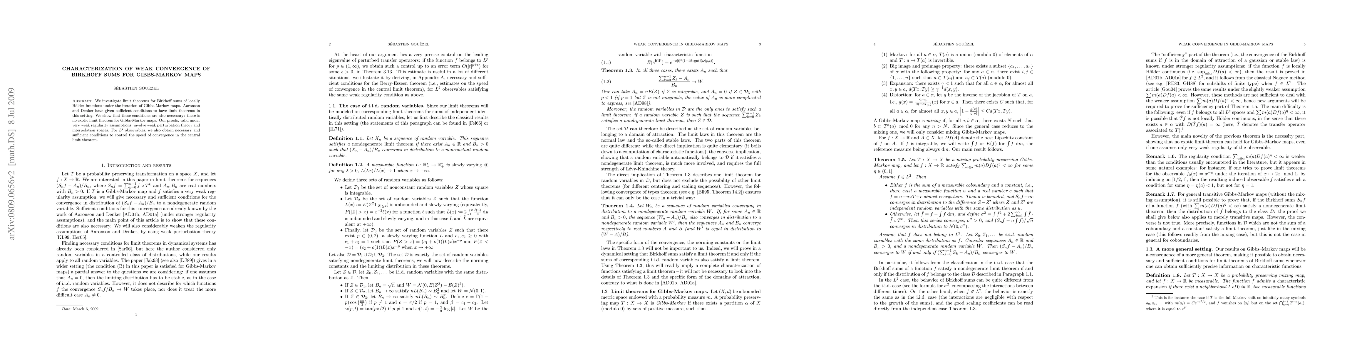 We investigate limit theorems for Birkhoff sums of locally H\"older functions under the iteration of Gibbs-Markov maps. Aaronson and Denker have given sufficient conditions to have limit theorems in this setting. We show that these conditions are also necessary: there is no exotic limit theorem for Gibbs-Markov maps. Our proofs, valid under very weak regularity assumptions, involve weak perturbation theory and interpolation spaces. For L^2 observables, we also obtain necessary and sufficient conditions to control the speed of convergence in the central limit theorem.