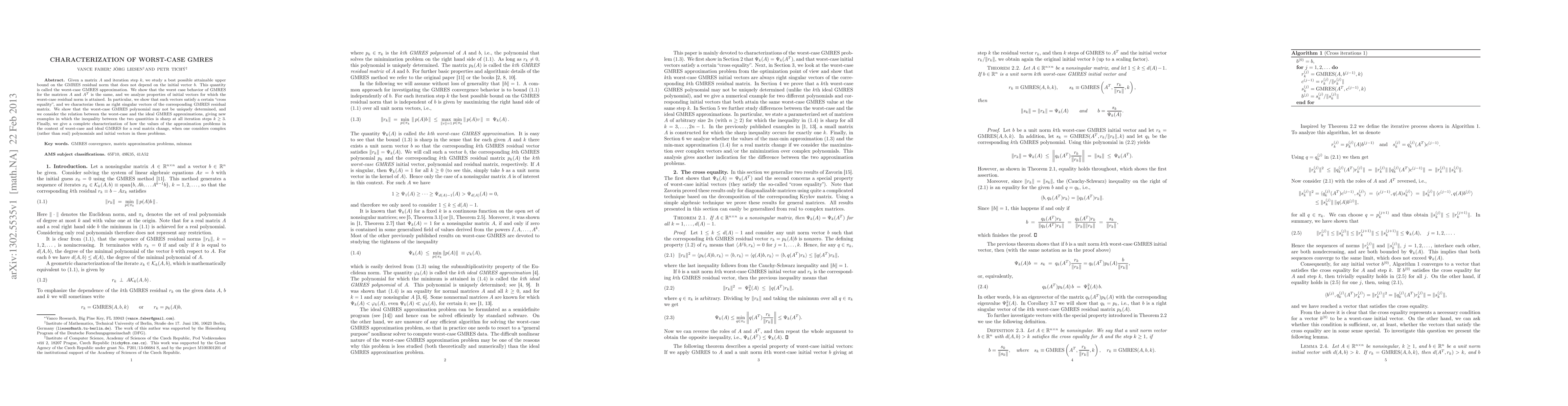 Researchers study the worst-case scenario for GMRES (Generalized Minimum Residual) method in linear algebra, finding that it has unique properties for optimal initial vectors and characterizing its behavior for real and complex matrices.