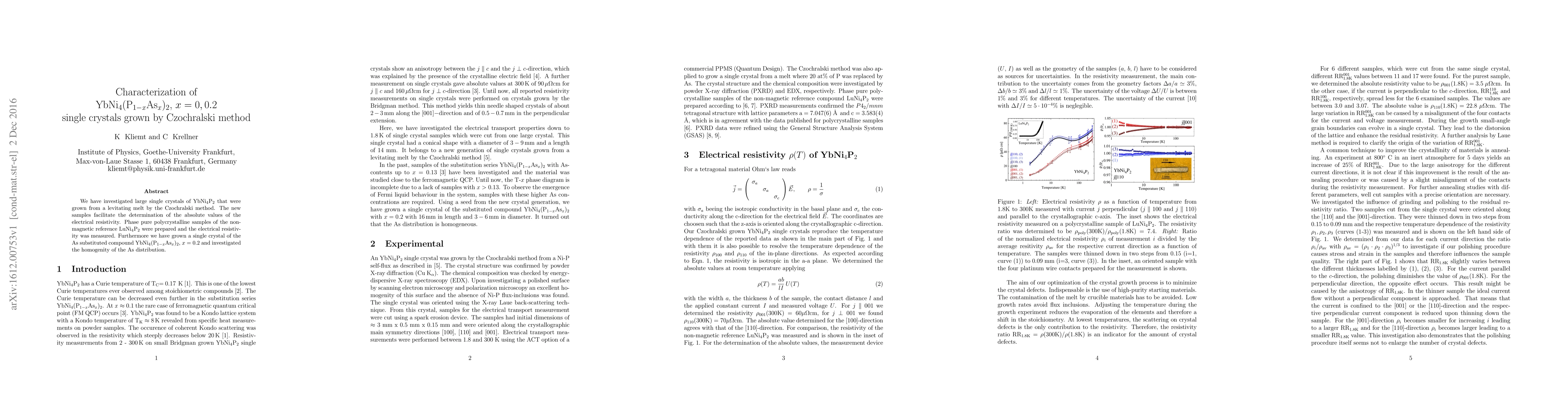 Researchers grew single crystals of YbNi4P2 and its As-substituted compound to study electrical resistivity and investigate the homogeneity of arsenic distribution.