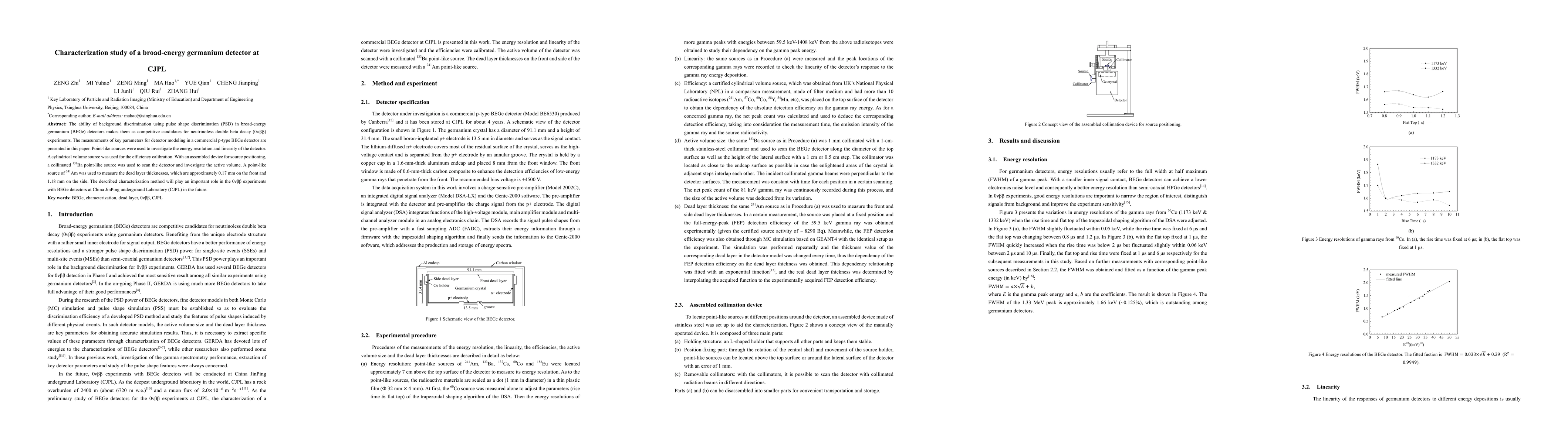 This paper characterizes a broad-energy germanium detector for neutrinoless double beta decay experiments, focusing on pulse shape discrimination, energy resolution, and efficiency calibration. Key parameters such as dead layer thicknesses were measured, providing essential data for future applications at CJPL.