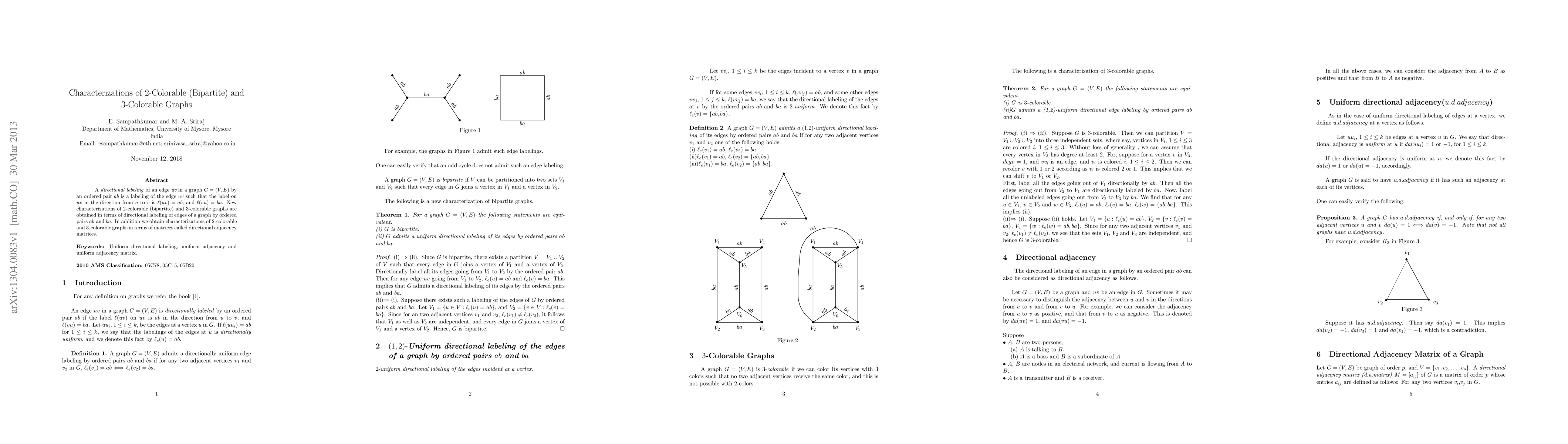 The research provides new characterizations of 2-colorable and 3-colorable graphs in terms of directional labeling and adjacency matrices