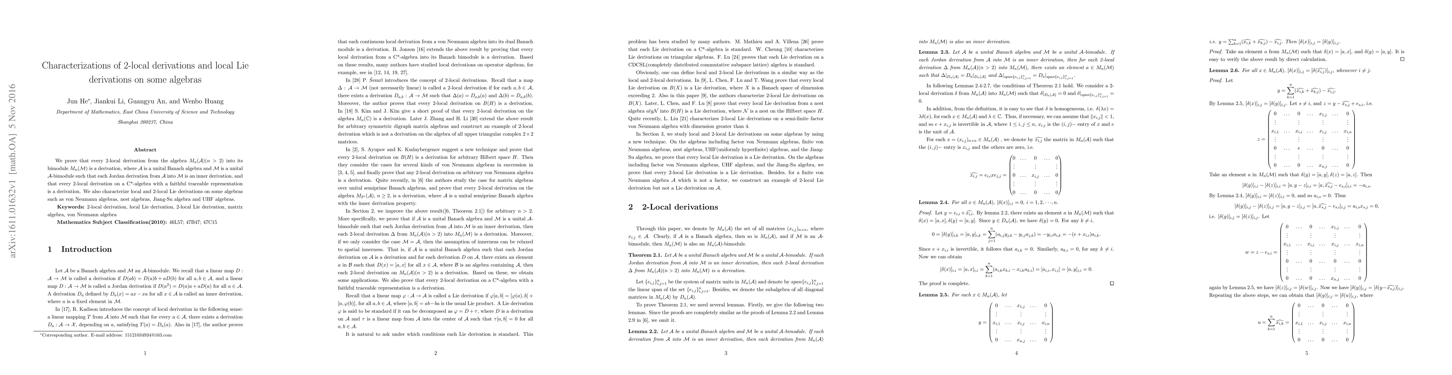 Summary: This paper demonstrates that 2-local derivations on certain algebras like $M_n(\mathcal{A})$ are genuine derivations under specific conditions, and characterizes local and 2-local Lie derivations across various algebras, including von Neumann algebras and UHF algebras.