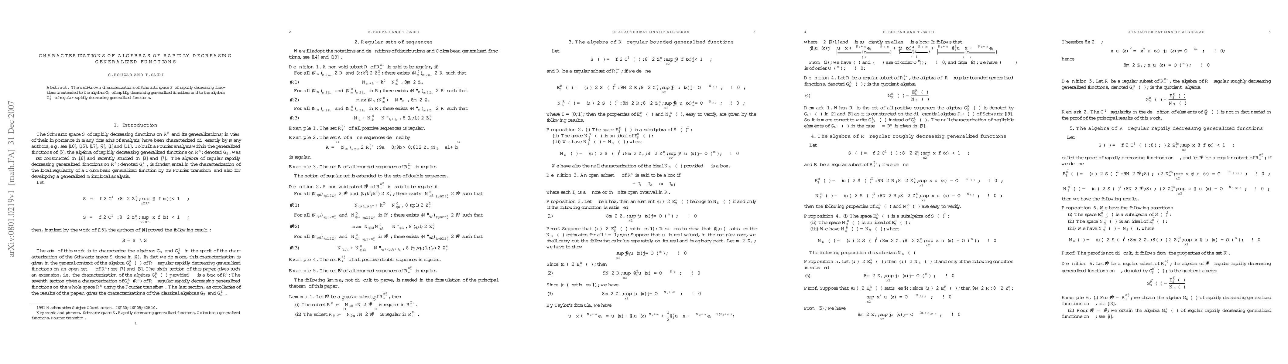 This paper extends well-known characterizations of rapidly decreasing functions to generalized functions and their regular versions, shedding light on new properties and relationships in the field of distributions.