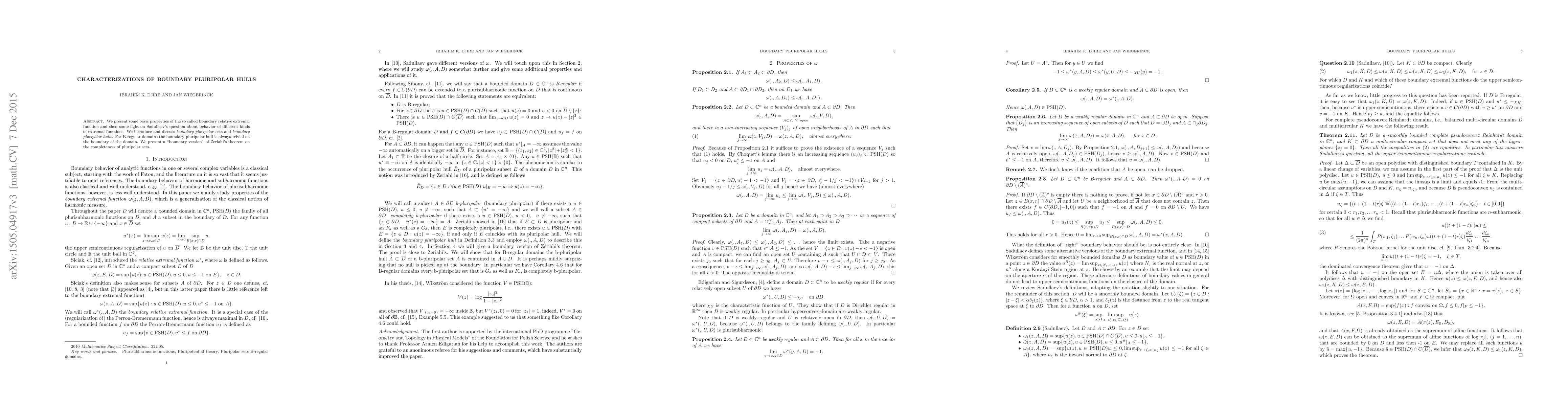 This paper explores the properties of boundary relative extremal functions and introduces boundary pluripolar sets and hulls. It demonstrates that for B-regular domains, the boundary pluripolar hull is trivial on the domain's boundary and provides a boundary version of Zeriahi's theorem on the completeness of pluripolar sets.