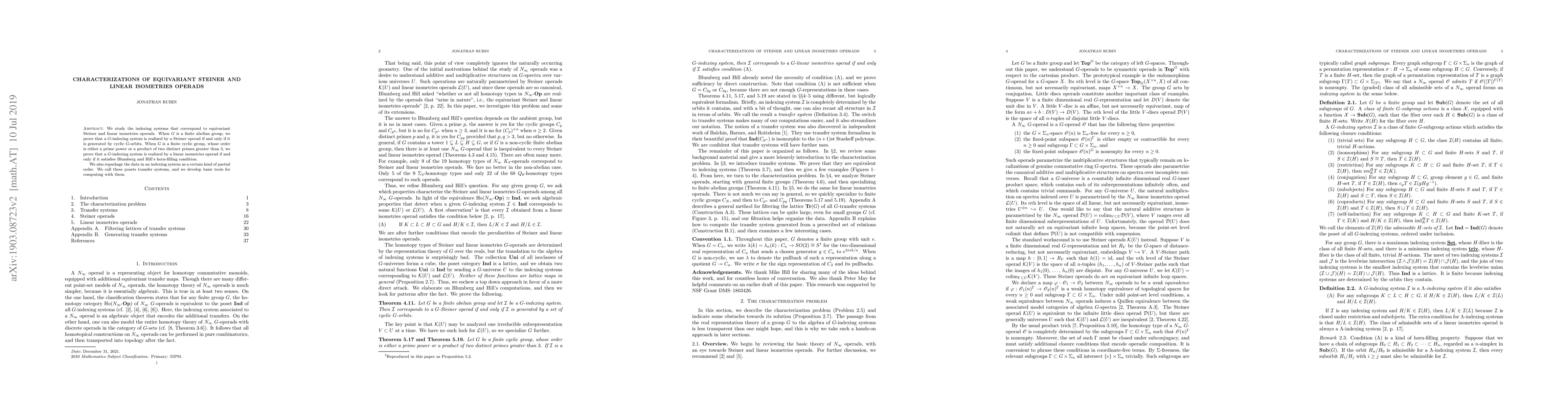 We study the indexing systems that correspond to equivariant Steiner and linear isometries operads. When $G$ is a finite abelian group, we prove that a $G$-indexing system is realized by a Steiner operad if and only if it is generated by cyclic $G$-orbits. When $G$ is a finite cyclic group, whose order is either a prime power or a product of two distinct primes greater than $3$, we prove that a $G$-indexing system is realized by a linear isometries operad if and only if it satisfies Blumberg and Hill's horn-filling condition. We also repackage the data in an indexing system as a certain kind of partial order. We call these posets transfer systems, and we develop basic tools for computing with them.
