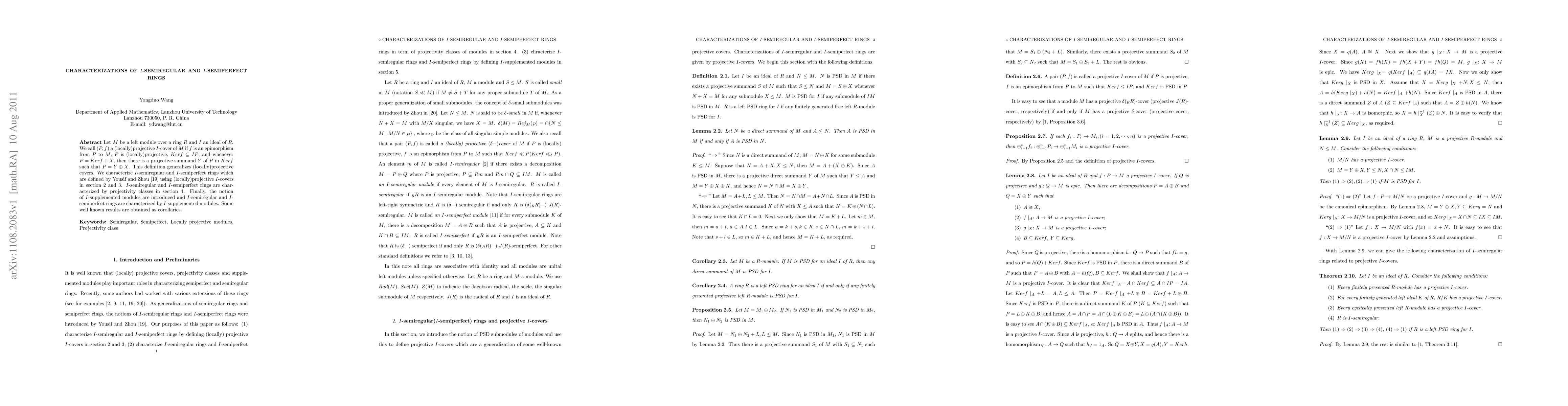 This paper characterizes $I$-semiregular and $I$-semiperfect rings using (locally)projective $I$-covers and $I$-supplemented modules, generalizing existing definitions and providing new characterizations through projectivity classes. Some well-known results are derived as corollaries.